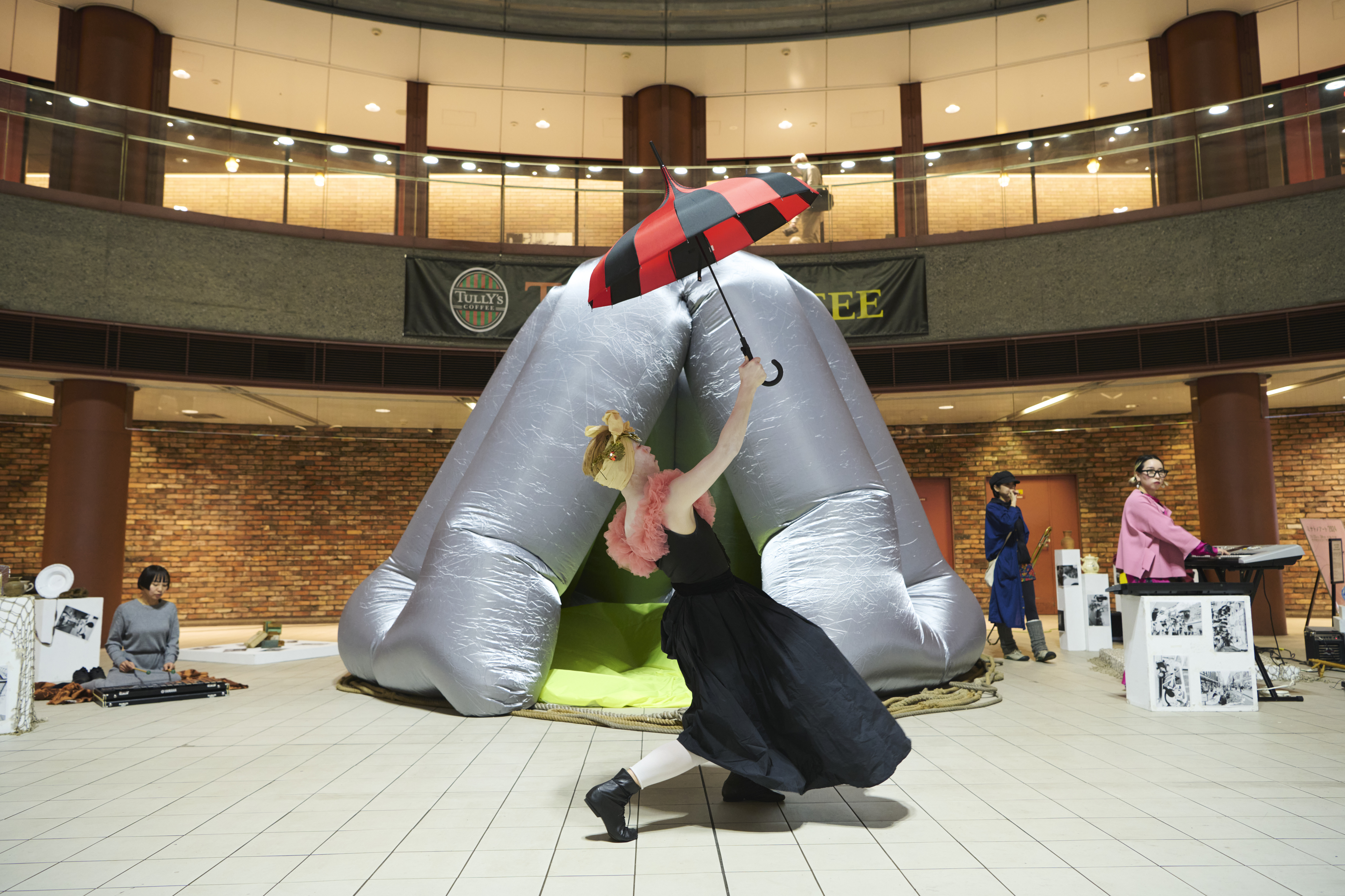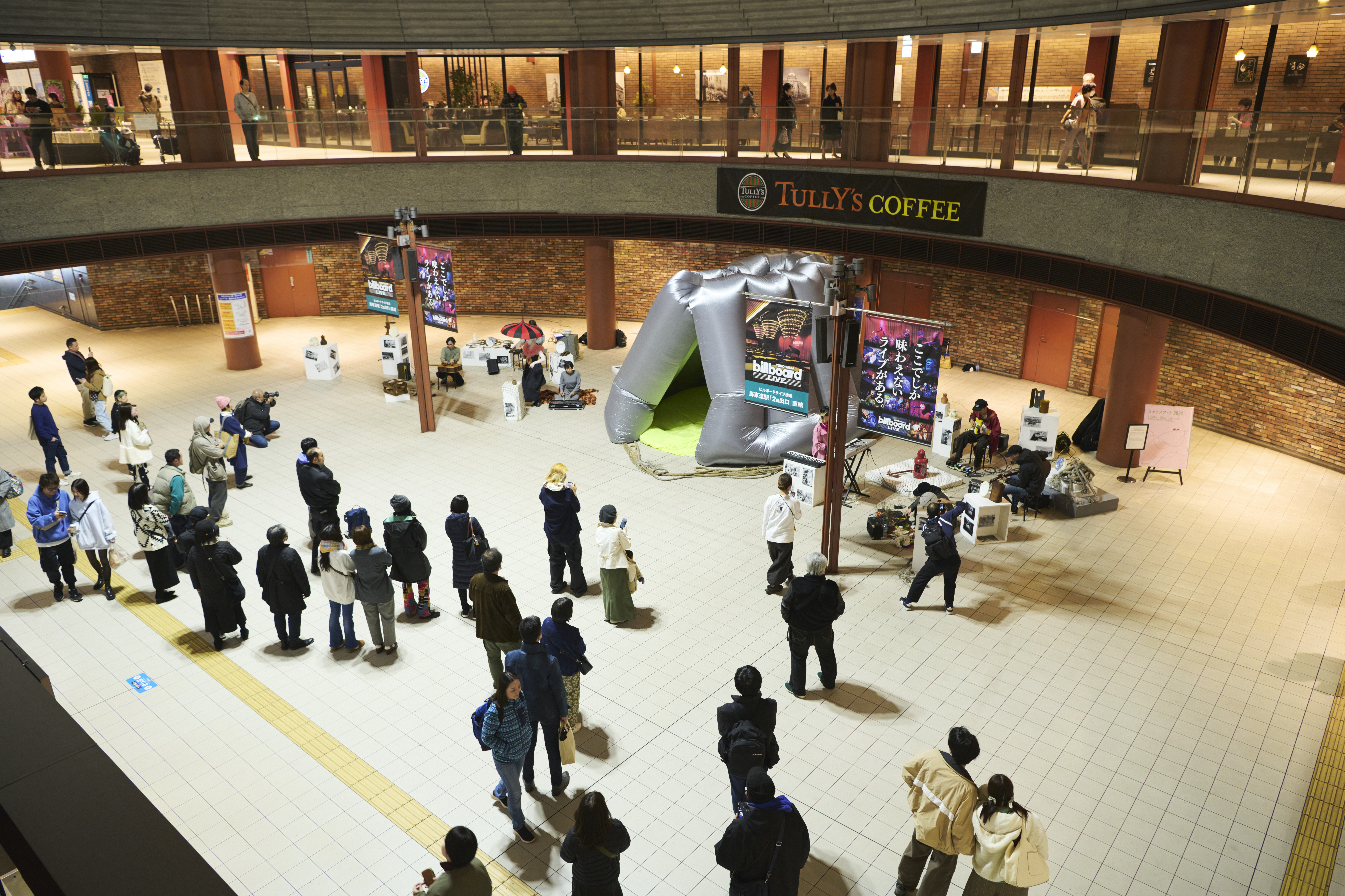 馬車道駅を象徴する改札内の大きな吹抜けでは、インスタレーションアートやライブパフォーマンスを展開。