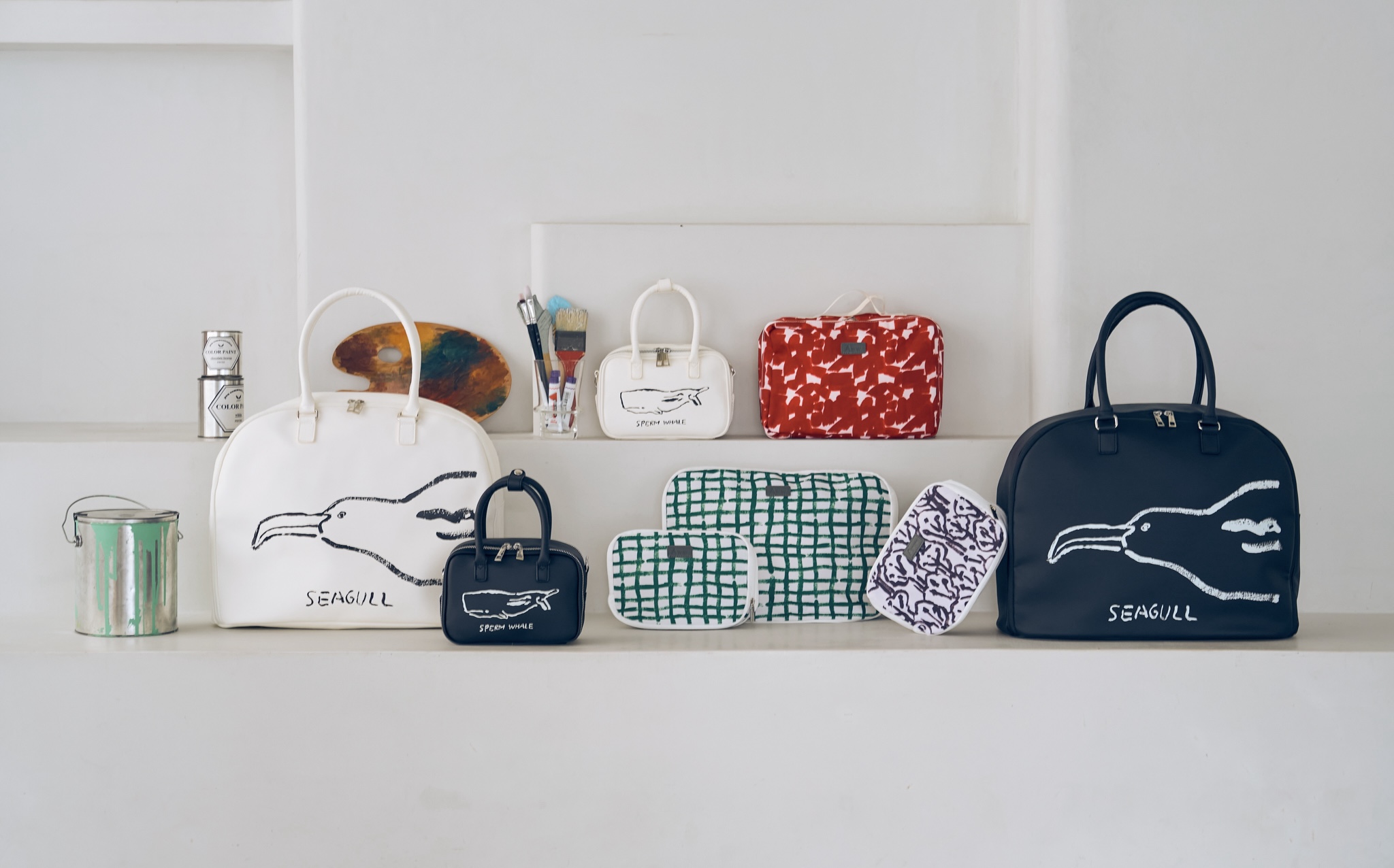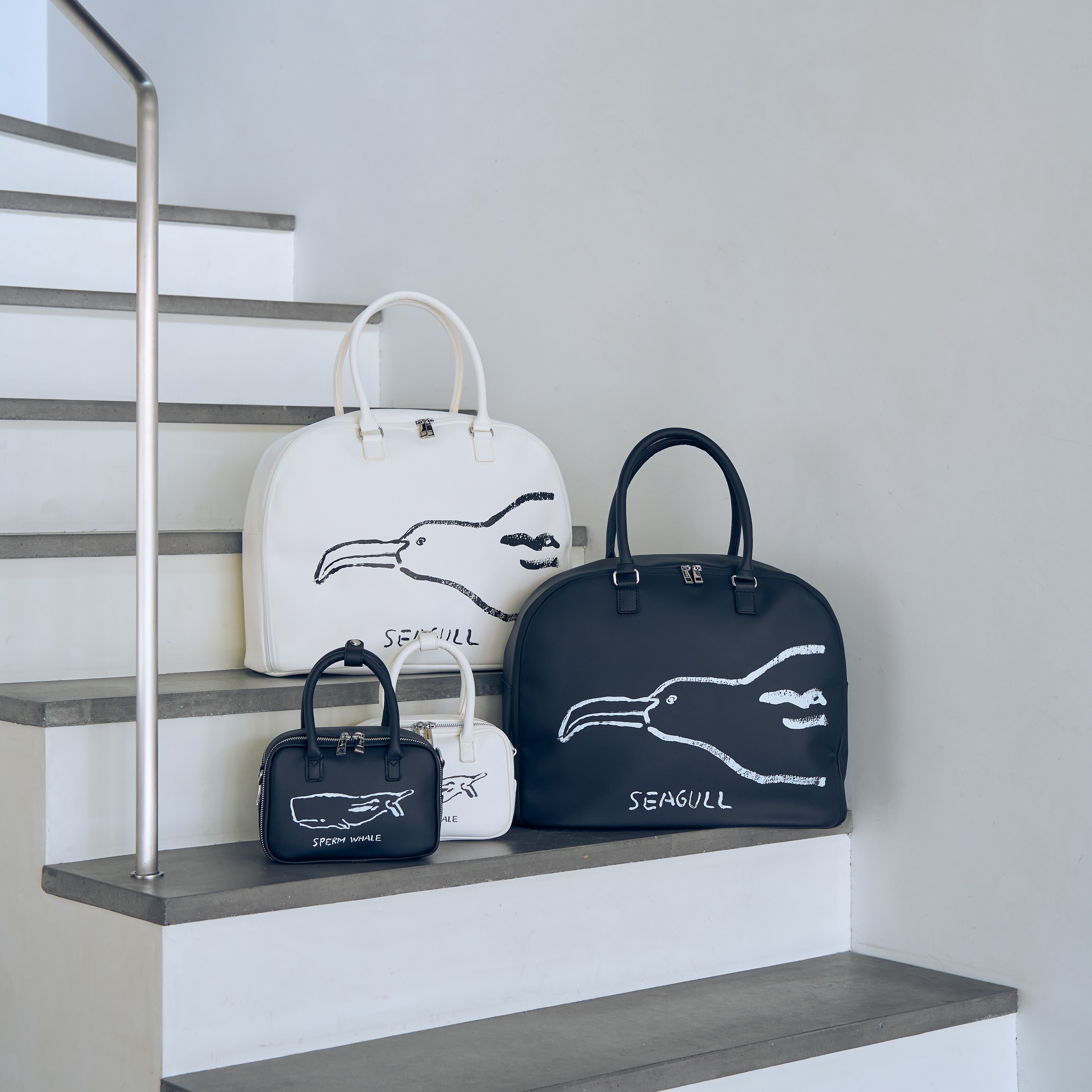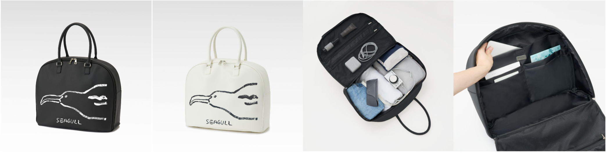 Awwのベストセラーアイテムに、Lee Izumidaさんによるカモメのイラストを大胆にあしらった限定デザイン。2〜3泊の旅行にぴったりサイズ感で、性別や年齢を超えてお使いいただけるシンプルなフォルムが魅力です。出し入れしやすい開口部と多数のポケットを備え、収納力にも優れています。素材には、柔らかさと耐久性を兼ね備えたサボテンレザーを採用しています。