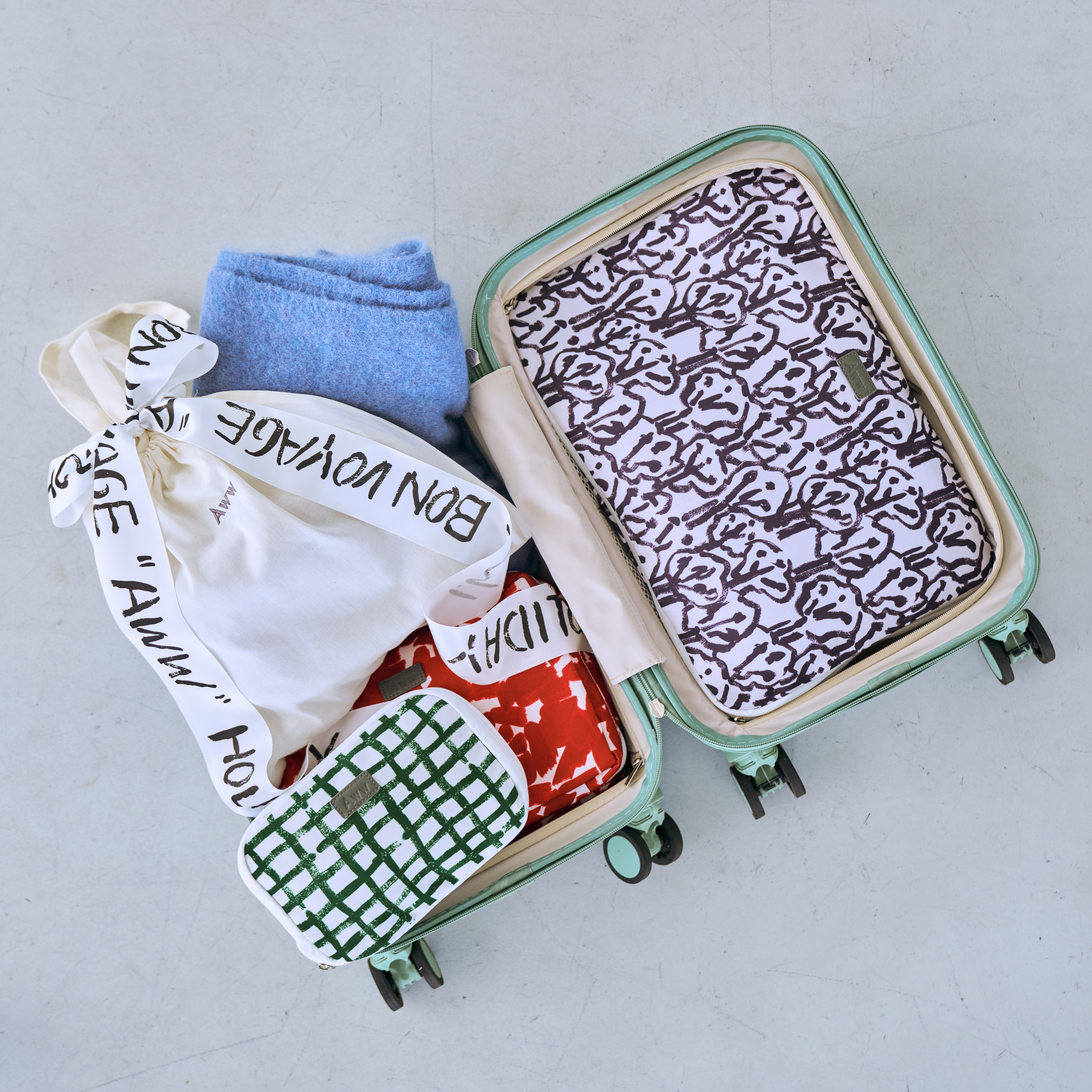 Izumidaさんの遊び心のあるイラストが、持つ人の気分を明るくし、旅の気分を一層高めます。サステナブルな素材と確かな使いやすさを両立した、Awwならではのプレイフルでプラクティカルなラインナップです。