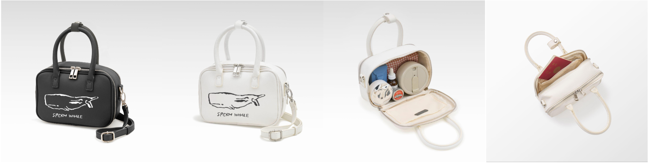 Lee Izumidaさんによるクジラのイラストをあしらった限定デザイン。コンパクトながらしっかり自立する設計で、日常のお出かけや旅先のサブバッグとしても活躍します。メイン収納は2つのスペースに分かれ、500mlペットボトルも入る収納力。パスポートがぴったり入る内ポケット付きで、スリ対策にも配慮しています。取り外し可能なショルダーストラップ付き。