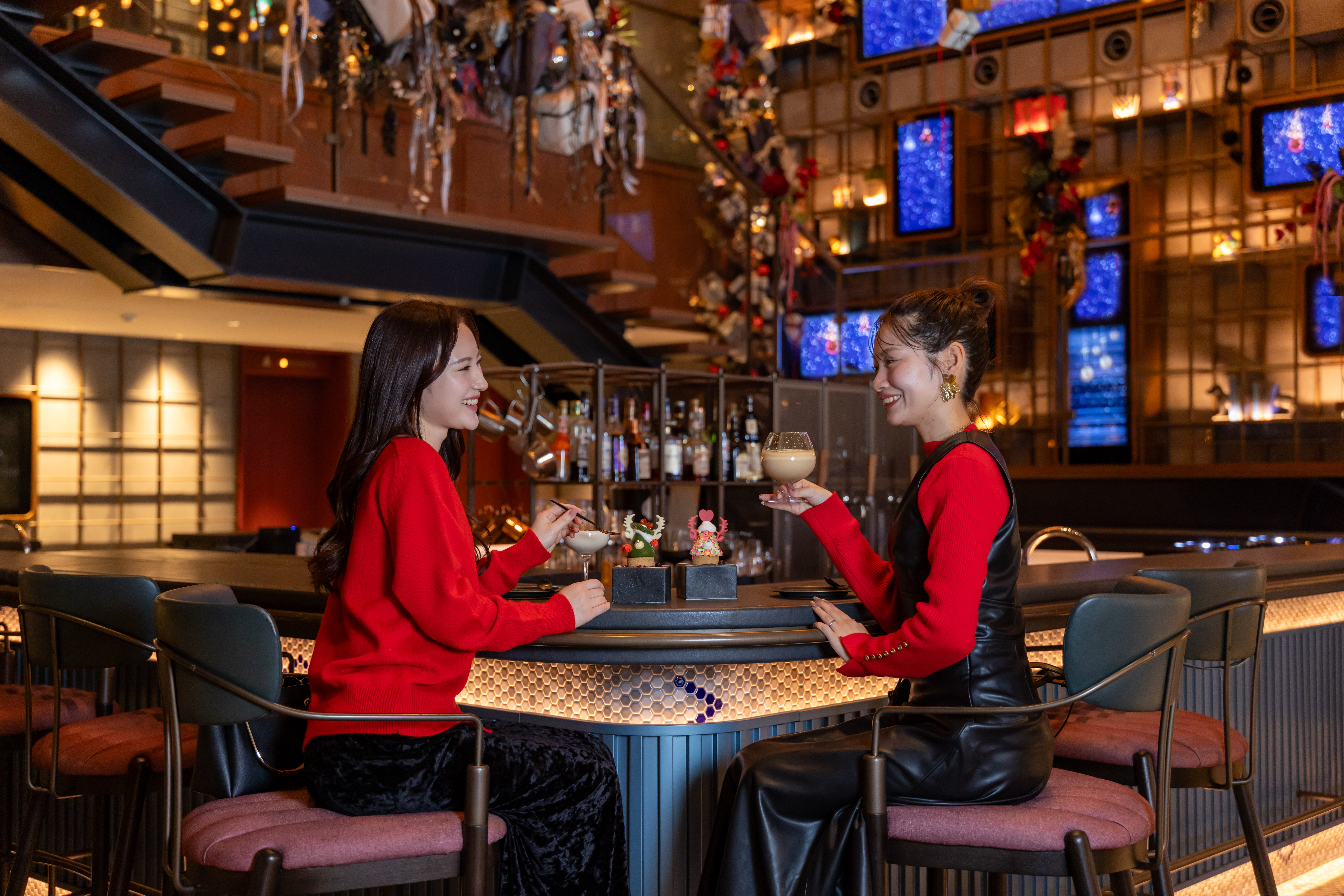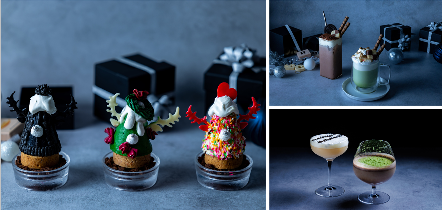 カフェバーでは、クリスマス気分を盛り上げるスイーツやカクテルをご用意しています。