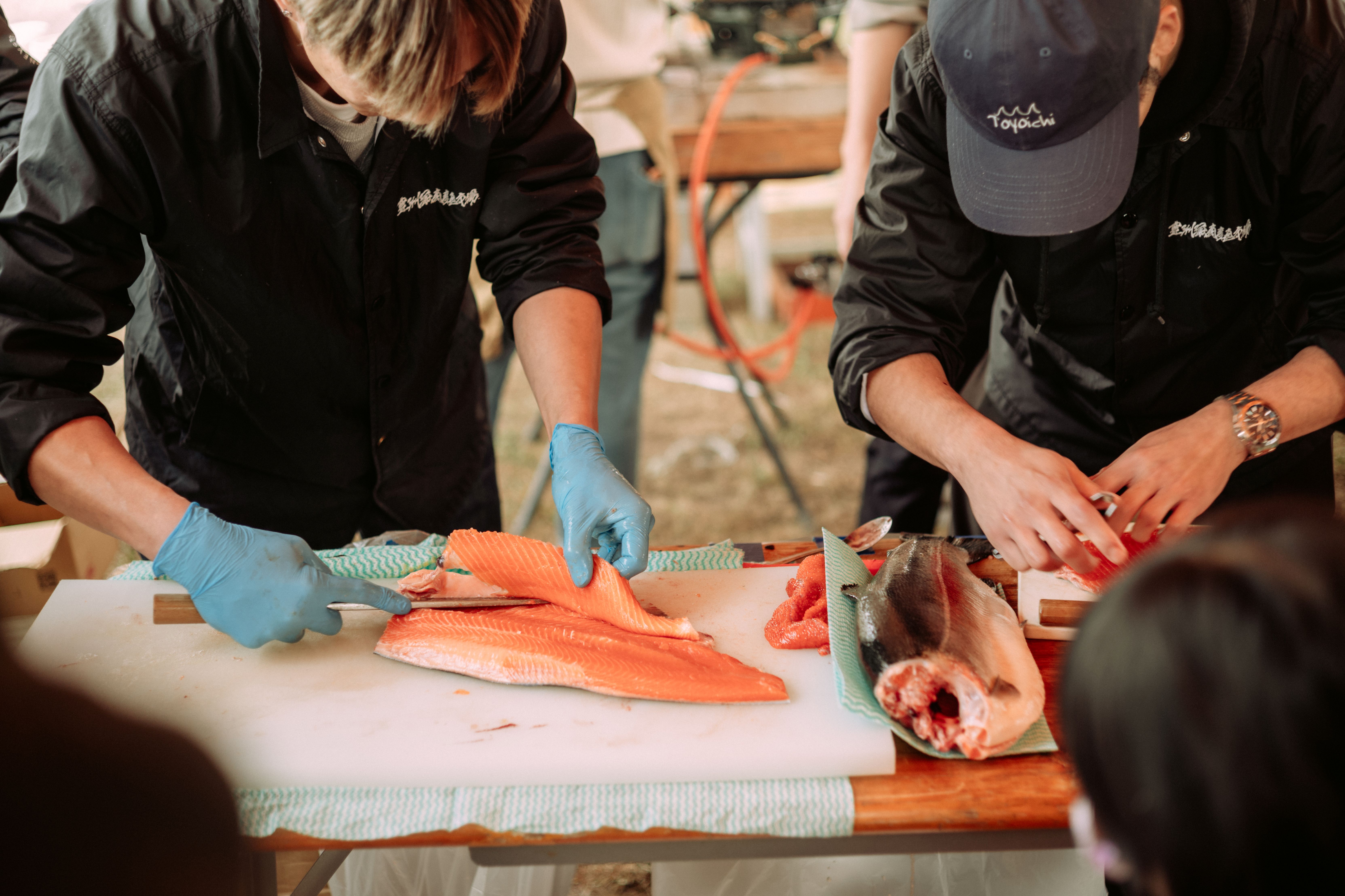 ▲木更津の陸上養殖を含む3種のサーモンを食べ比べる企画