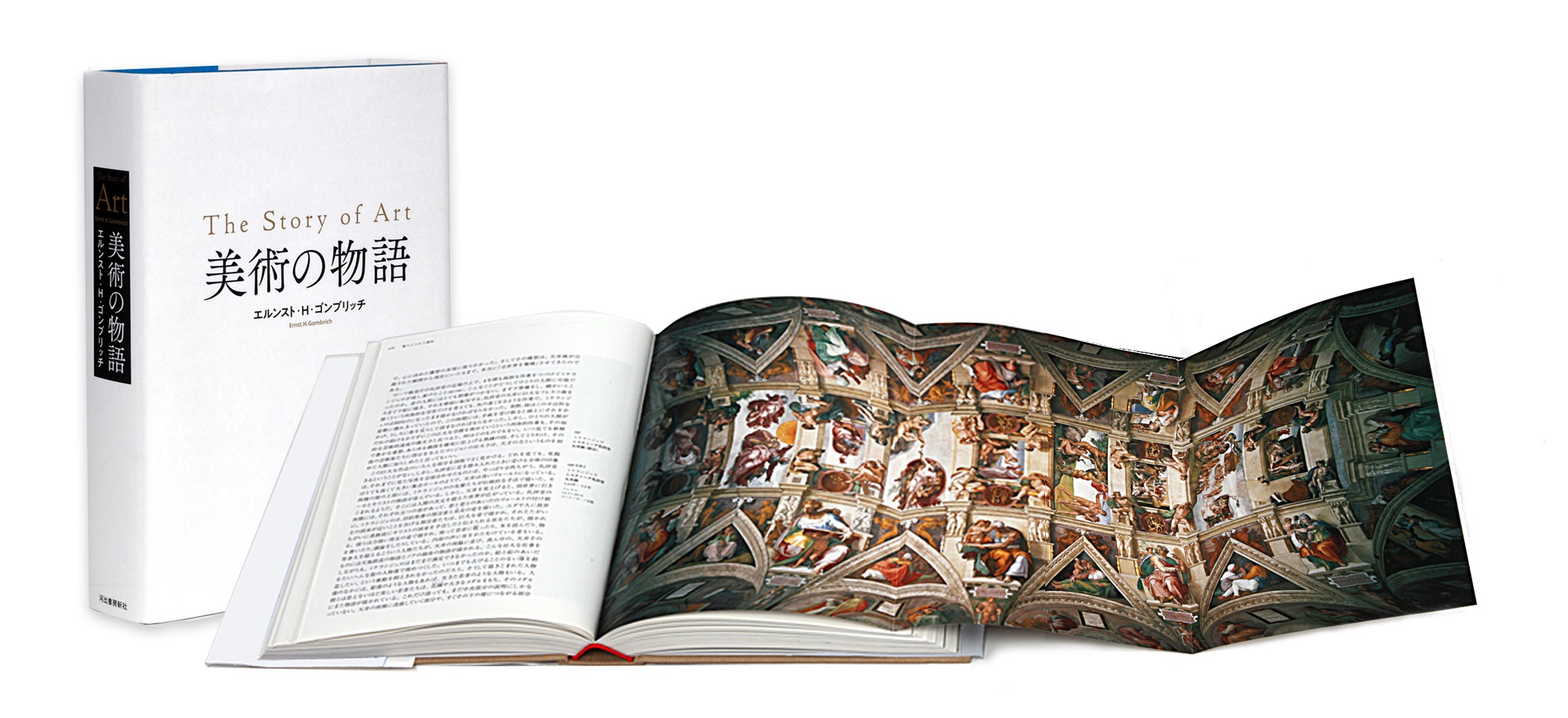 『美術の物語 ポケット版』の表紙は、鮮やかな⻩色の布クロス装。本文は糸によるかがり綴じ。書籍としての強度を上げつつ、優美な装幀が持つ独特の存在感は大きな魅力です。また、元本『美術の物語』と比べてページ数こそ668ページから1048ページへと増えたものの、大きさは大判から新書に近いサイズに、また重量は約1800gから約750gへといずれも半分以下にサイズダウン。いつでも読みやすく、どこへでも持ち運びやすいので、すでに『美術の物語』をお持ちでも、「ポケット版」も入手したいという方も多いのではないでしょうか。そして本書には、エルンスト・H・ゴンブリッチの孫レオニー・ゴンブリッチによる「ポケット版への序文」が新たに追加掲載されています。