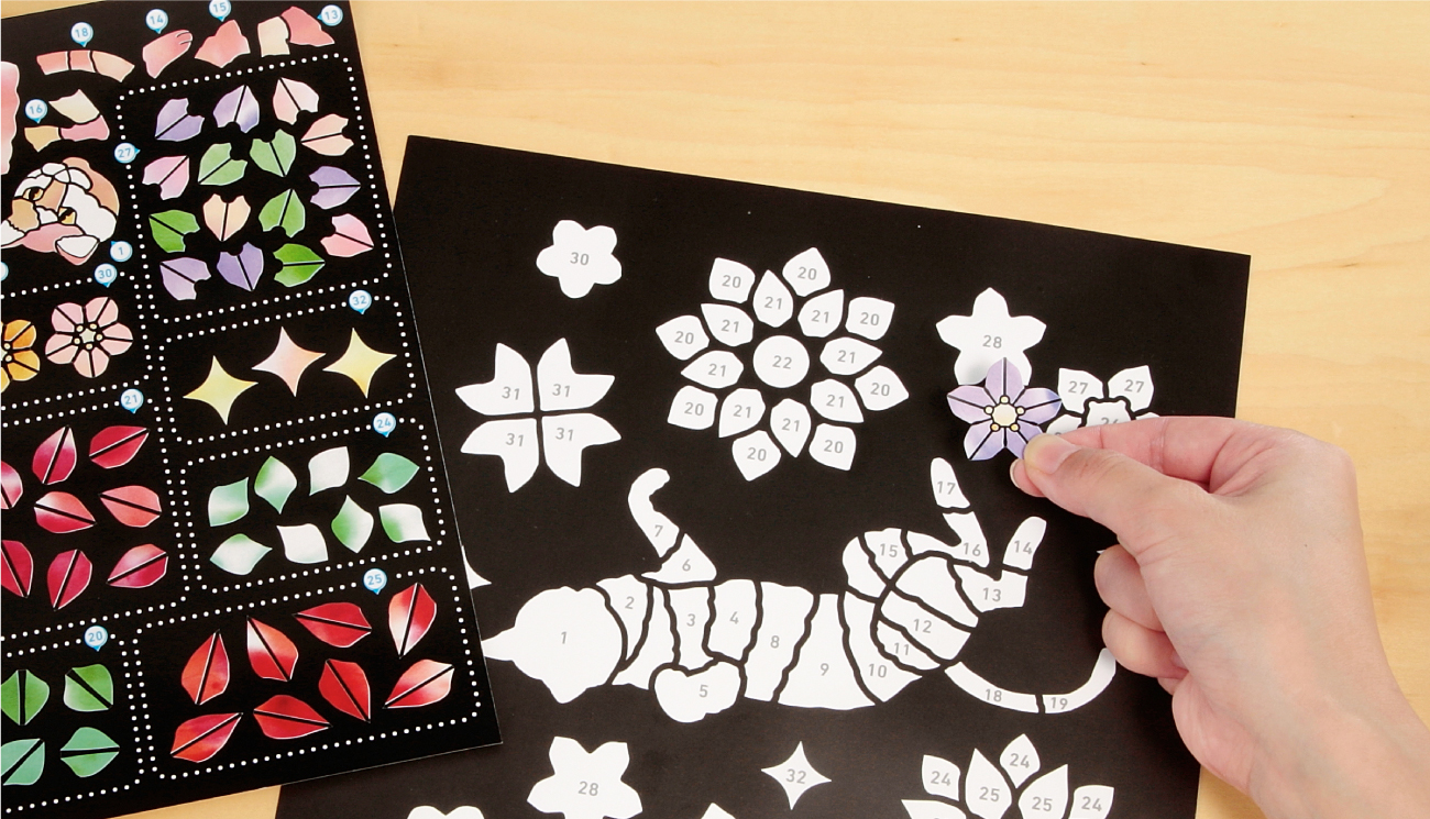 ■道具いらず! カラフルなシールを貼って、ときめくイラストを完成させよう!