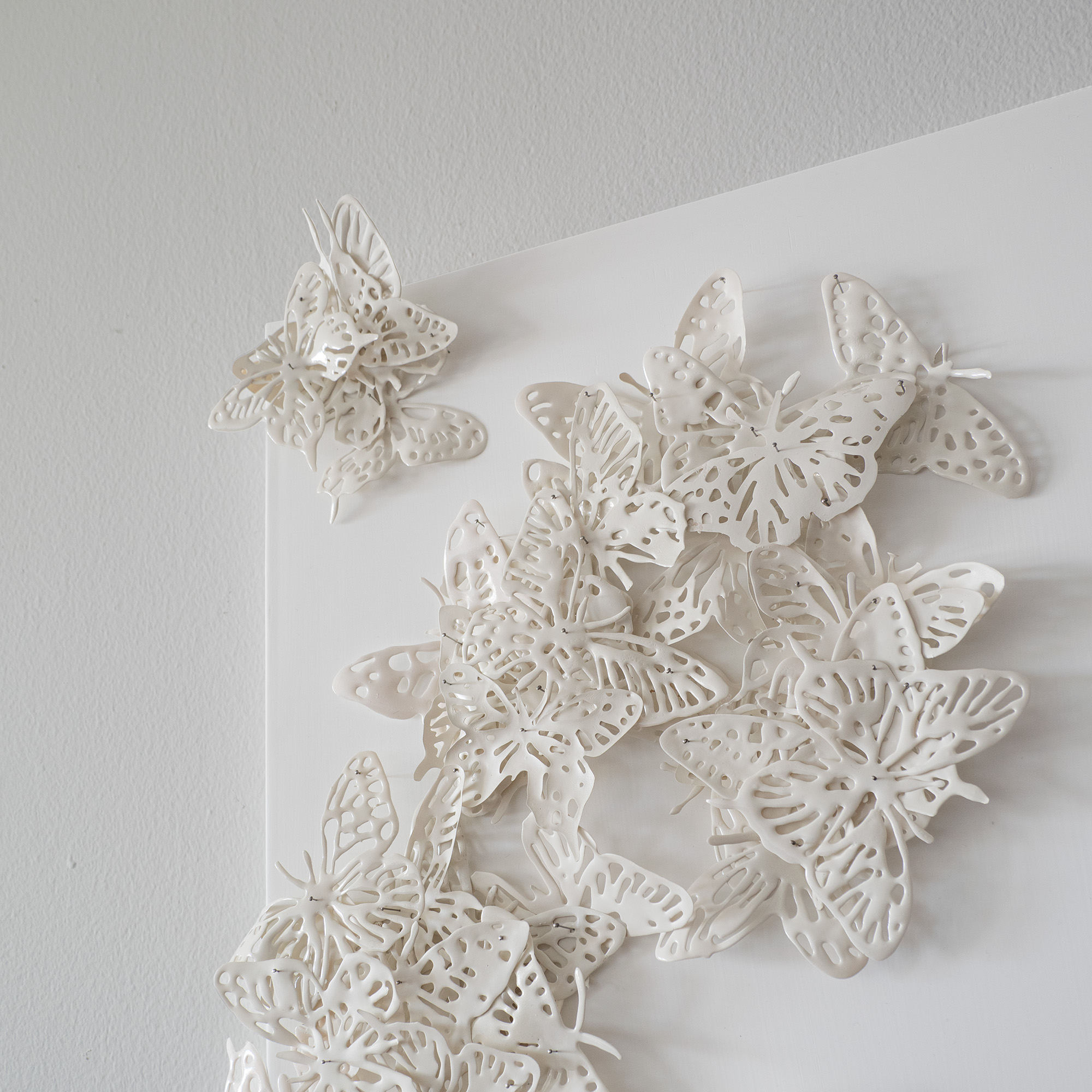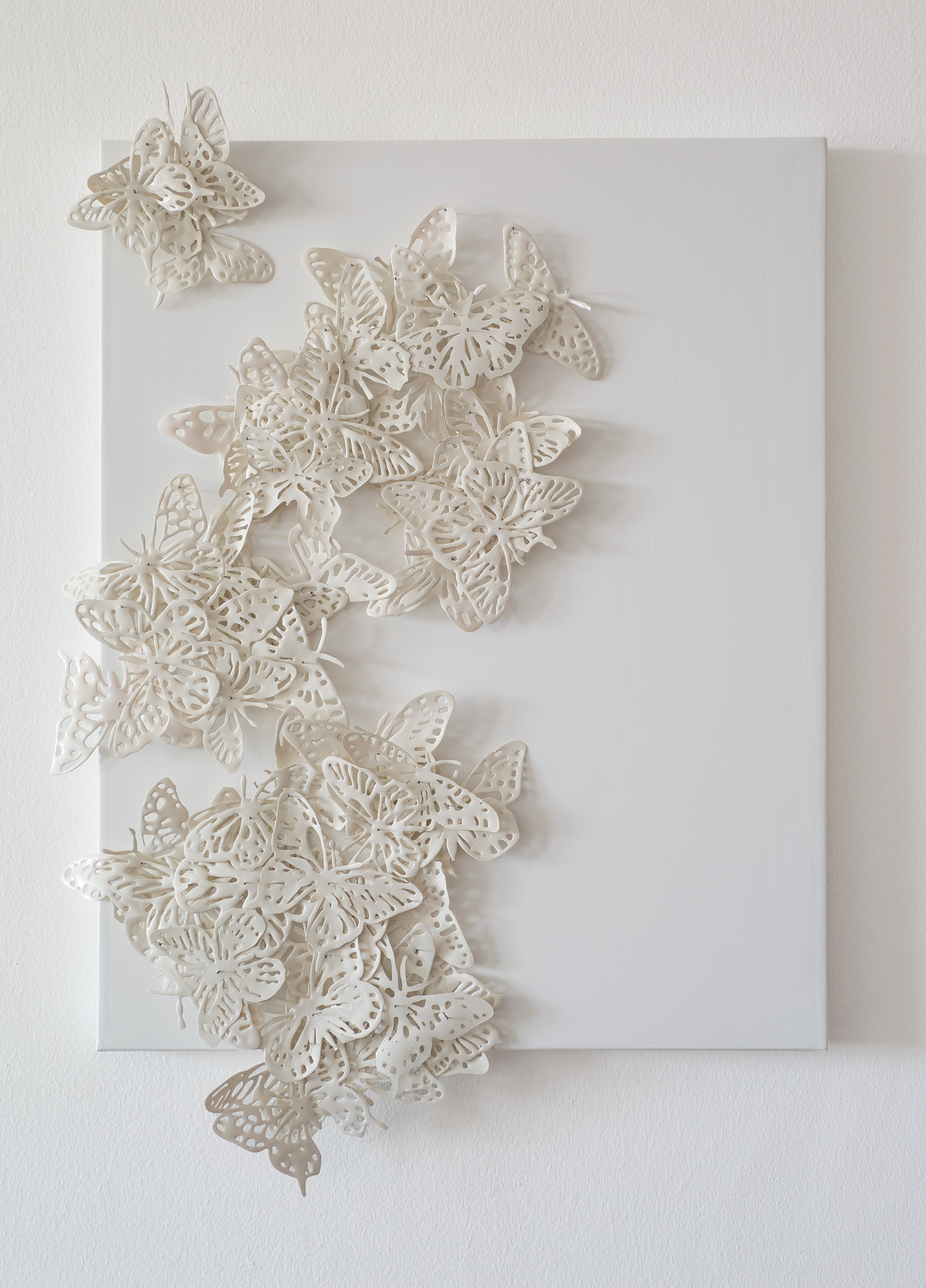 日本大学芸術学部卒業。東京での活動を経て結婚を機に渡米。白を基調とした繊細な色彩と日本的美意識に基づく作品を発表。大手町駅構内や老舗店舗のパブリックアートも手掛ける。近年は「記憶」と「再生」をテーマに、立体要素と平面を融合した新シリーズを展開。
