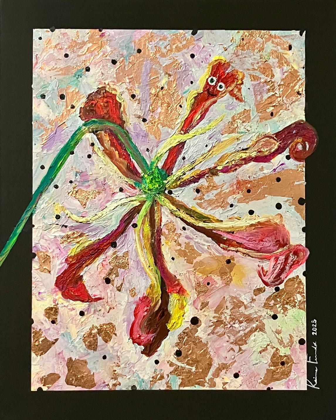 長崎県出身。動物や自然、ダンス、窓などから着想を得たカラフルで質感豊かな作品を制作。絵本作家・美術講師としても活動し、2025年にはアメリカ・Kin House Galleryでのレジデンシーに参加。