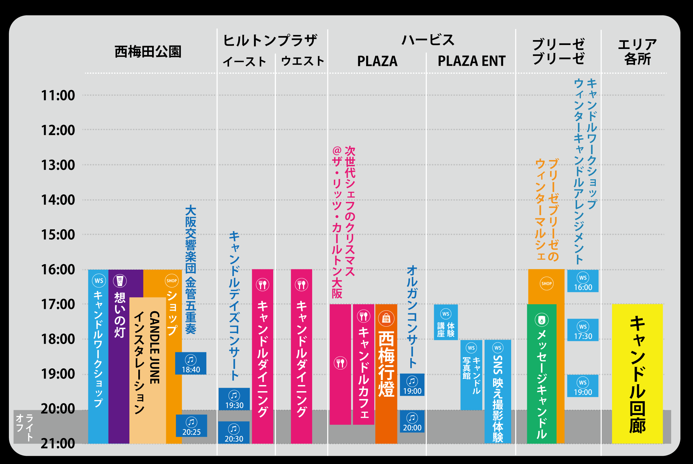 本イベントは参加者ひとりひとりの想い・願いが込められたキャンドルを灯して「みんなが主役のまちづくり」を具現化しながら、西梅田エリアの地域活性を継続的に推進してまいります。今後の展開にご期待ください。