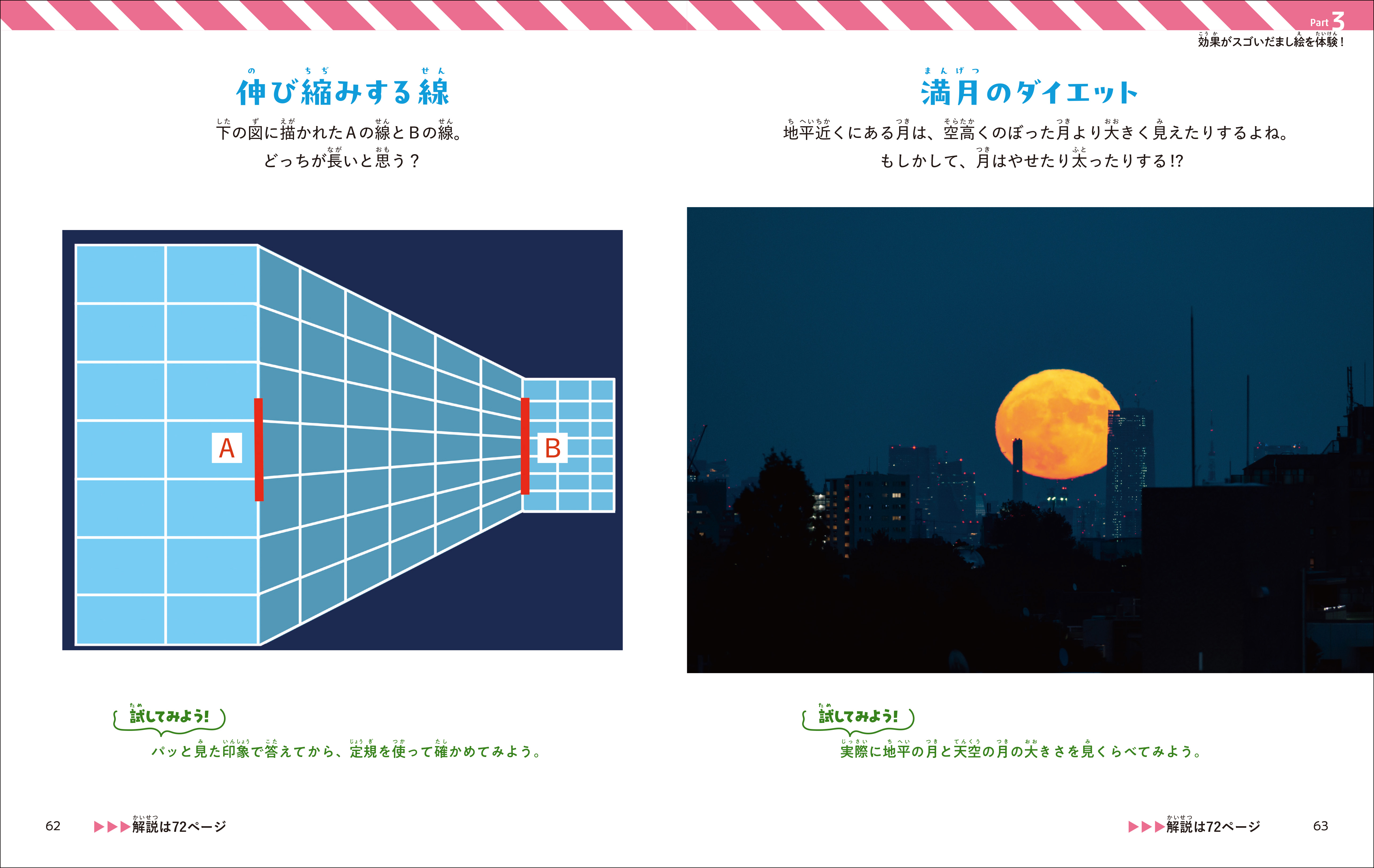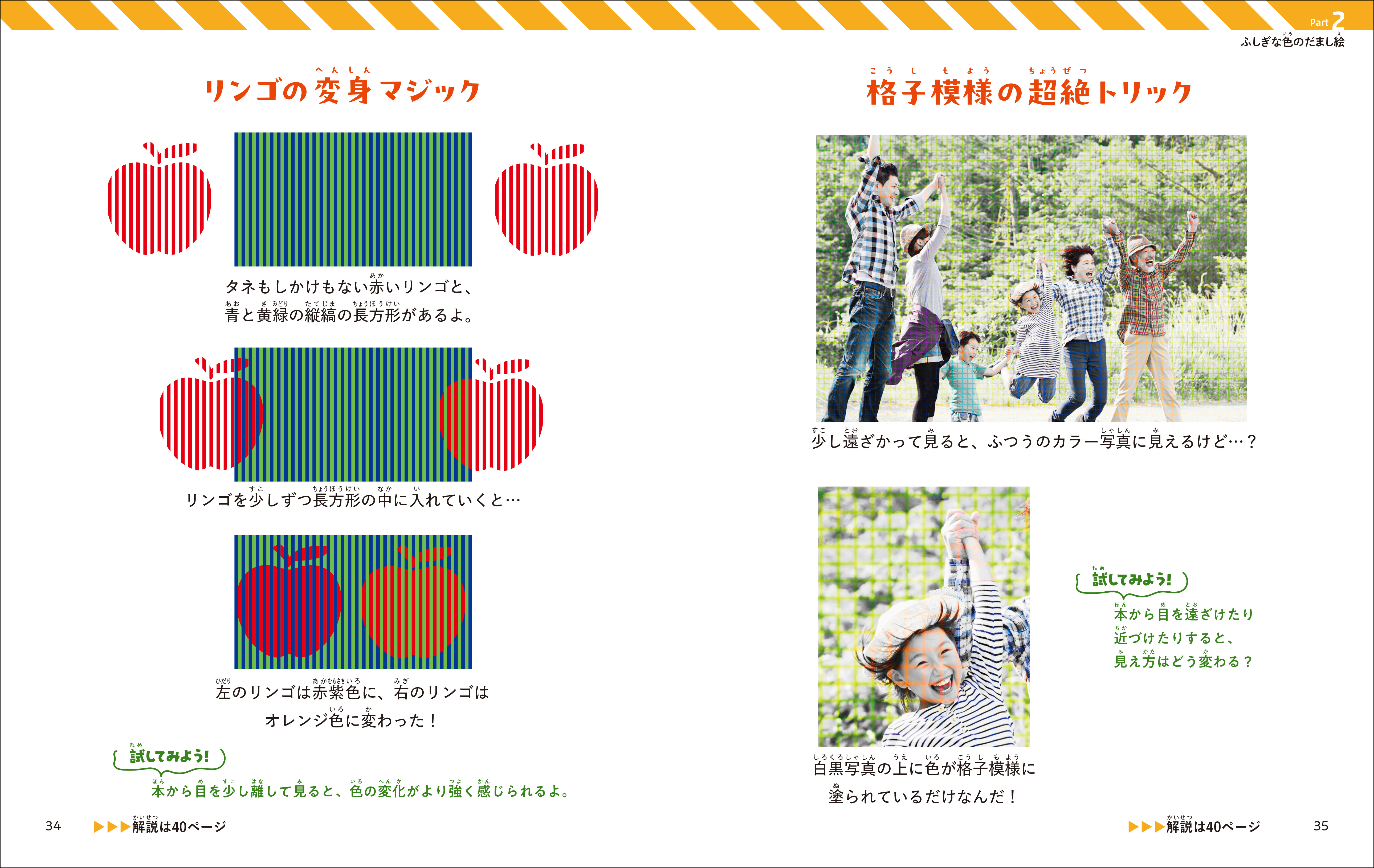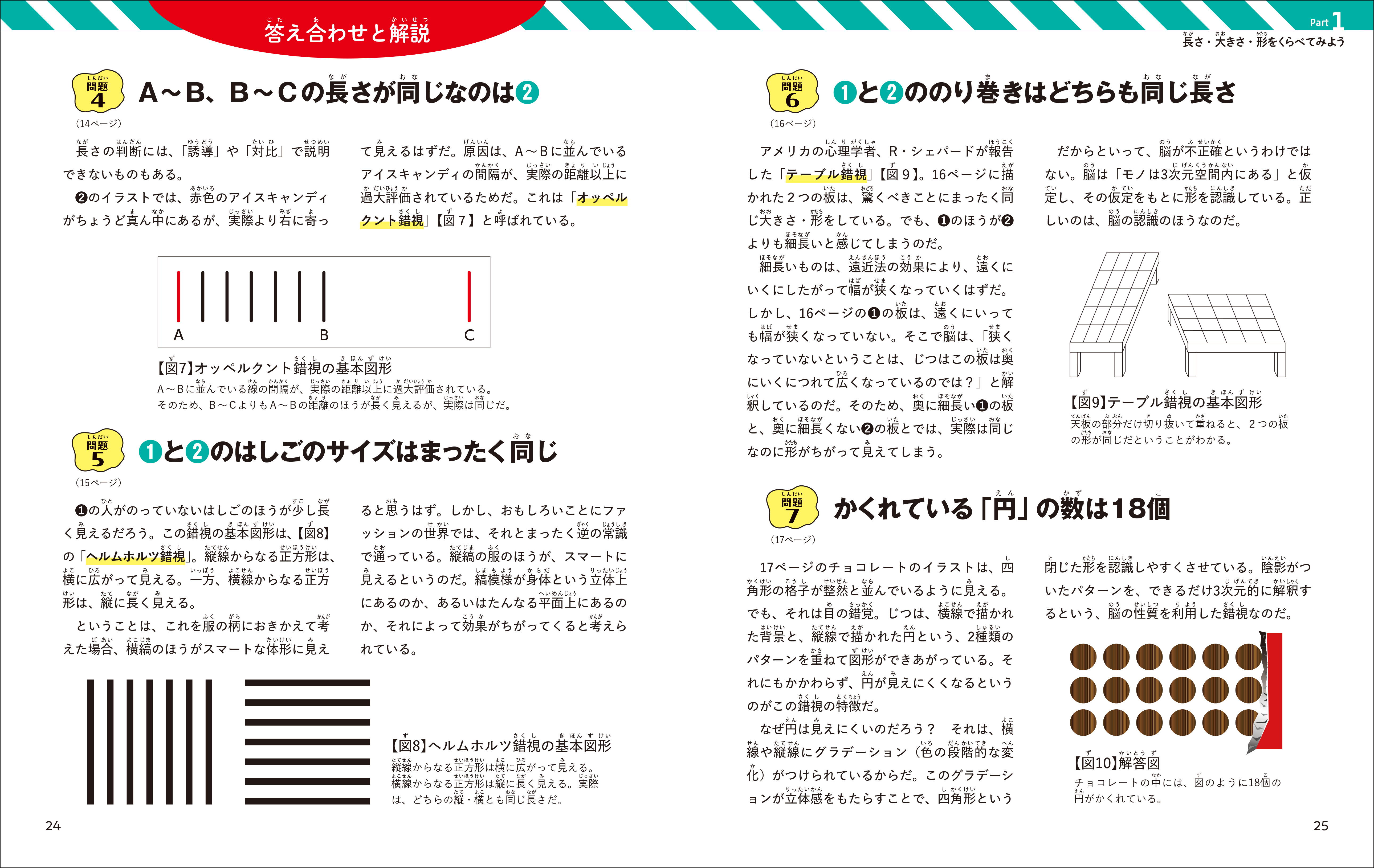本を遠ざけたり、さかさまにしてみたり、定規で測るなど、いろいろな方法でだまし絵を味わってください。きっとびっくりすることがたくさんあるでしょう。