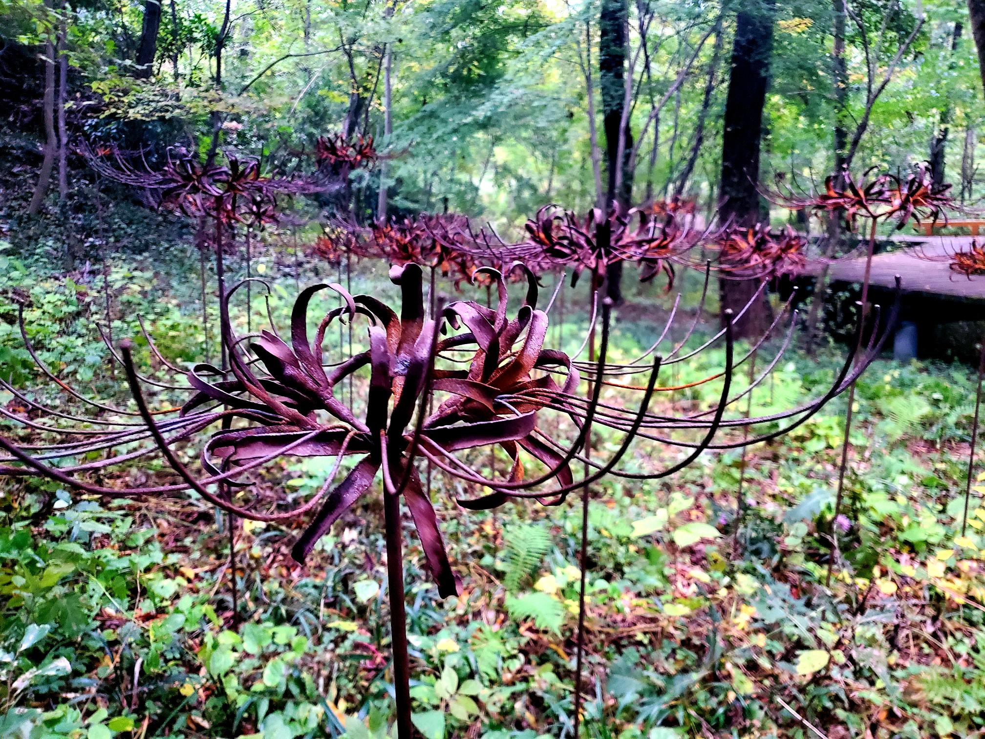 その一方で非常に繊細な彼岸花なども金属で制作している。レプリカのように細部まで再現するのではなく、観察から特徴を捉え形に起こすような作品を生み出している。2013年、第16回岡本太郎現代芸術賞特別賞受賞
