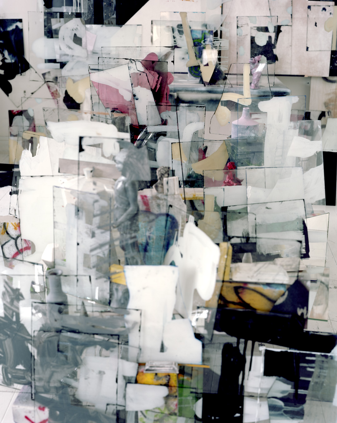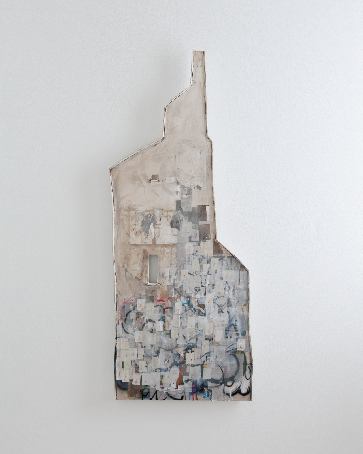 アーティスト中里伸也による本展は、物質世界と精神世界、そのあわいに立ち現れる“壁=ファサード”をテーマにした新作を発表します。これまで、写真や立体、絵画的要素を行き来しながら「見ること/見られること」の構造を探ってきた中里氏。本展では、過去の立体作品やドローイングに由来する形態を合板上に再構成し、都市のグラフィティを想起させる抽象的コラージュで、人々の感情が堆積する都市の表層を象徴的に描き出したものです。彼の創作活動の原点である「写真」というフォーマットを越え、抽象的に構成されたジオラマのようなオブジェクトは、まるで視覚の再認識を促す装置のようでもあります。