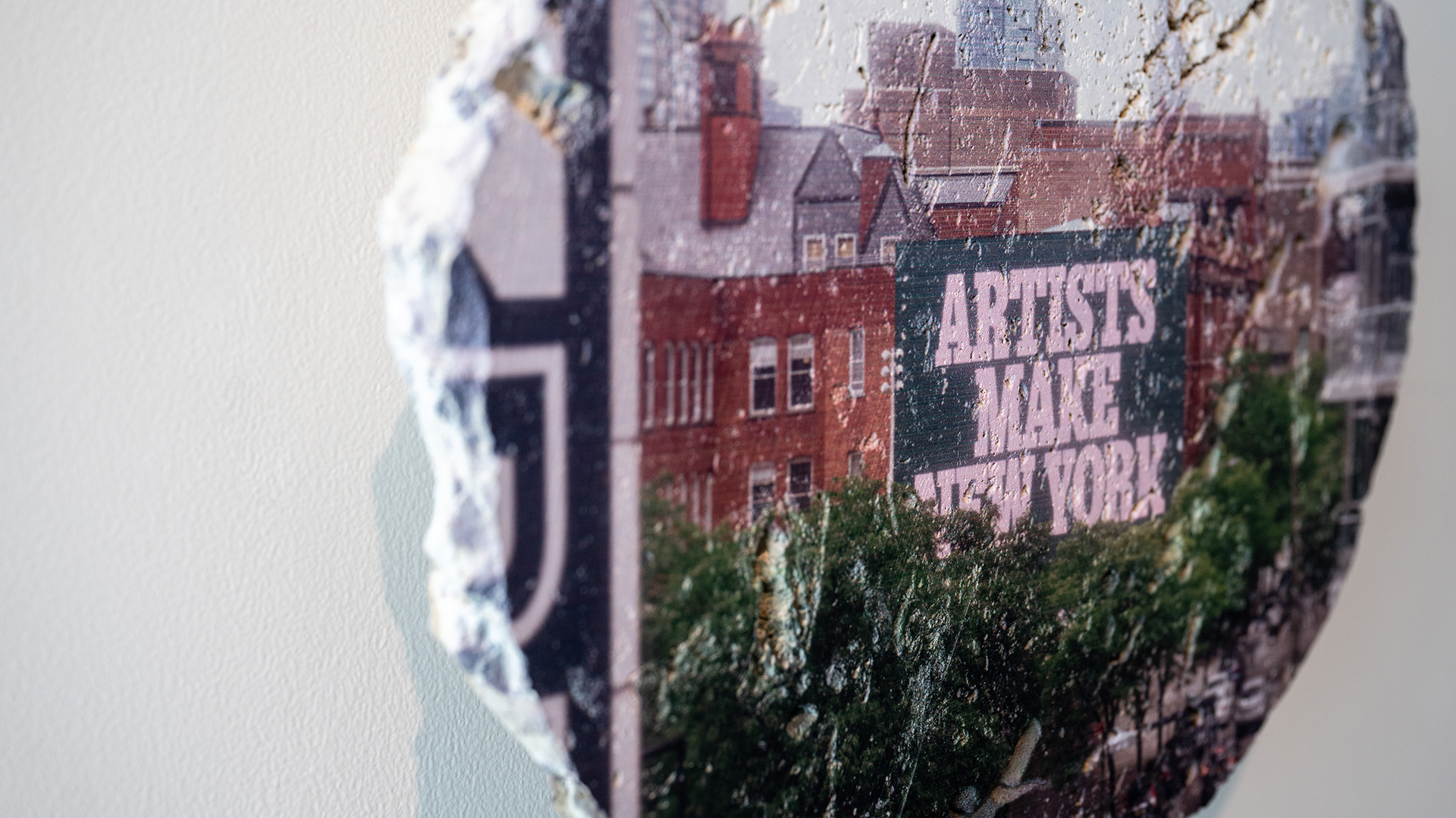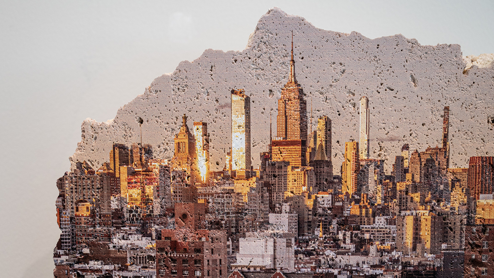 作品の軸となるのは、沖縄に根付く天然素材・琉球石灰岩。その独特の質感や脆さ、時間の積層に改めて向き合い、第二の故郷とも言えるニューヨークの感覚を重ね合わせることで、国吉は自らのルーツと今を結びつけます。