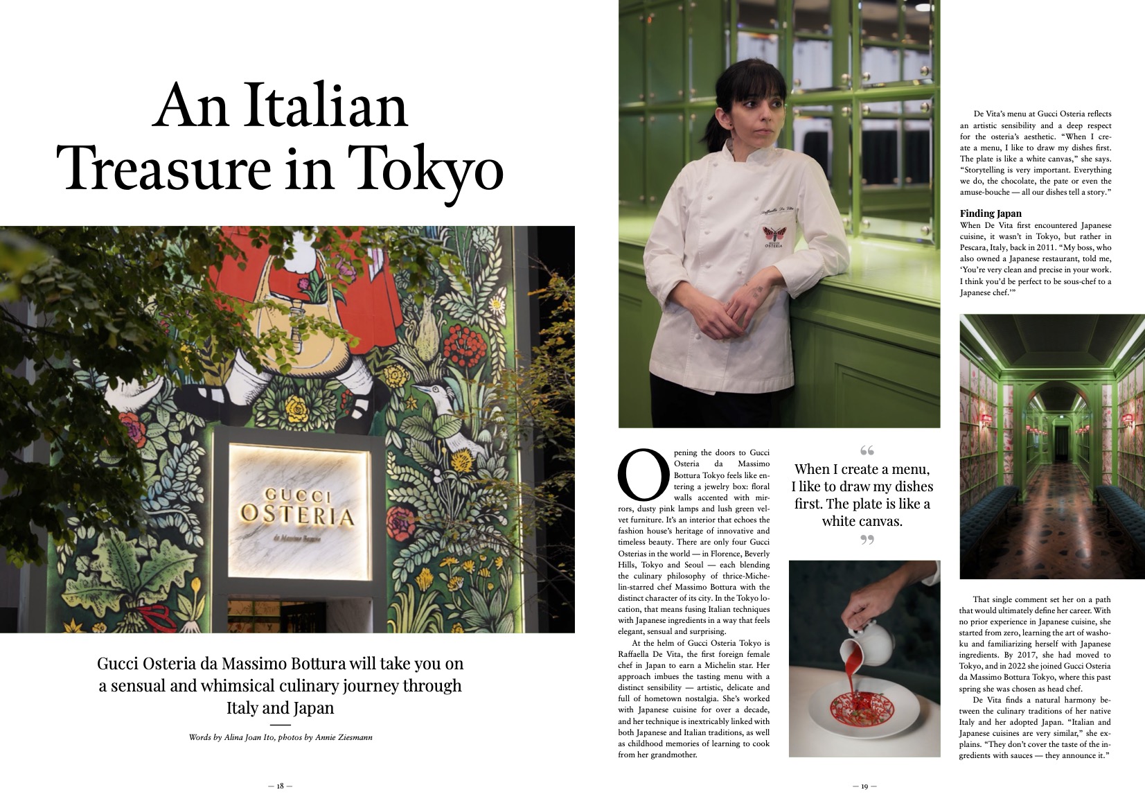 An Italian Treasure in Tokyo:日本人以外で初のミシュランの星を獲得した女性シェフ、ラファエラ・デ・ヴィータ氏(Gucci Osteria)の独占インタビューを掲載