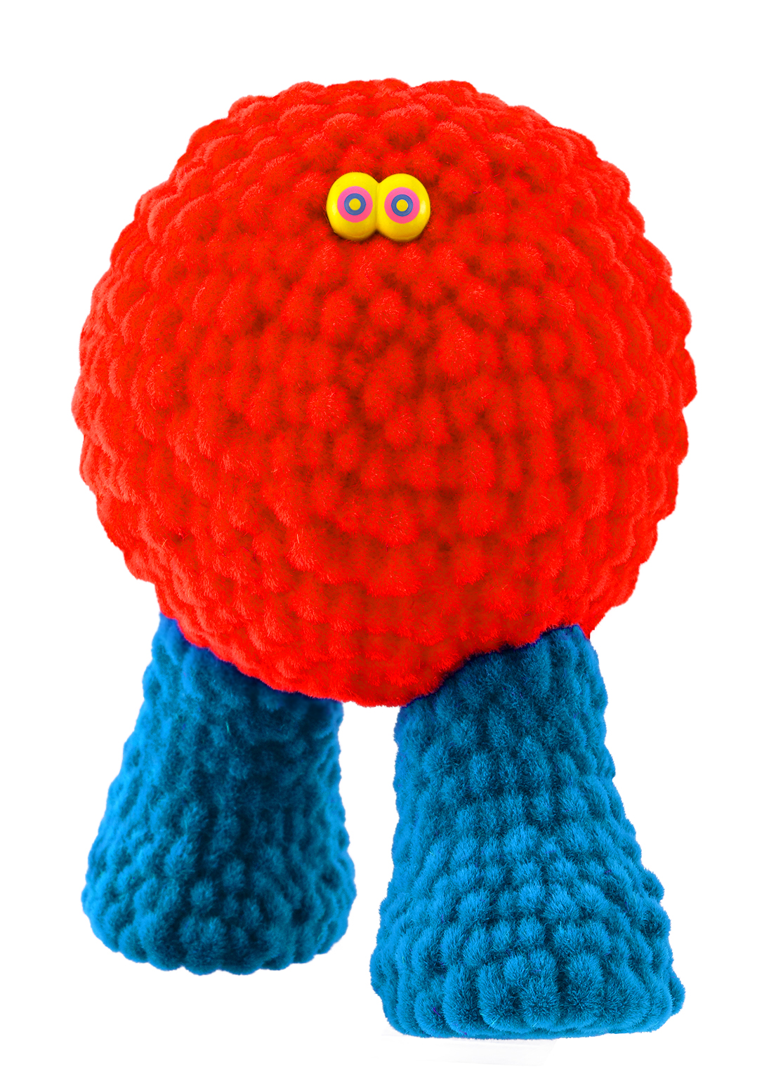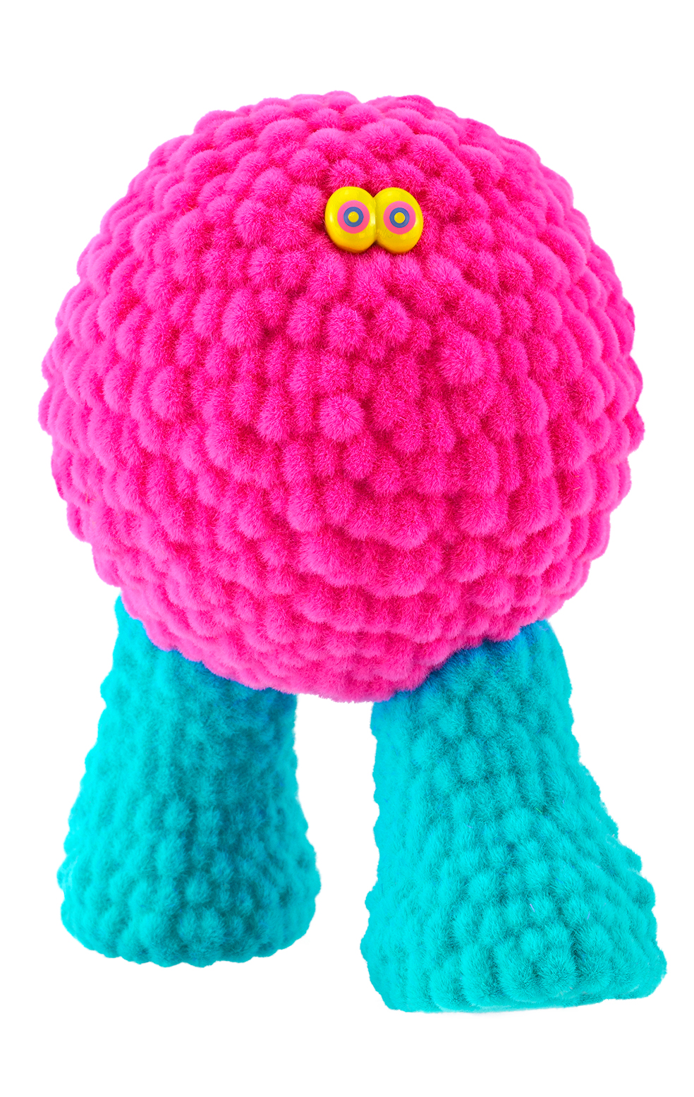 フジサキ氏の数ある作品の中で人気の『モールエイリアン』は、モールで表現されたカラフルな長い毛足や、そこから覗くきょとんした目が印象的なキャラクター。