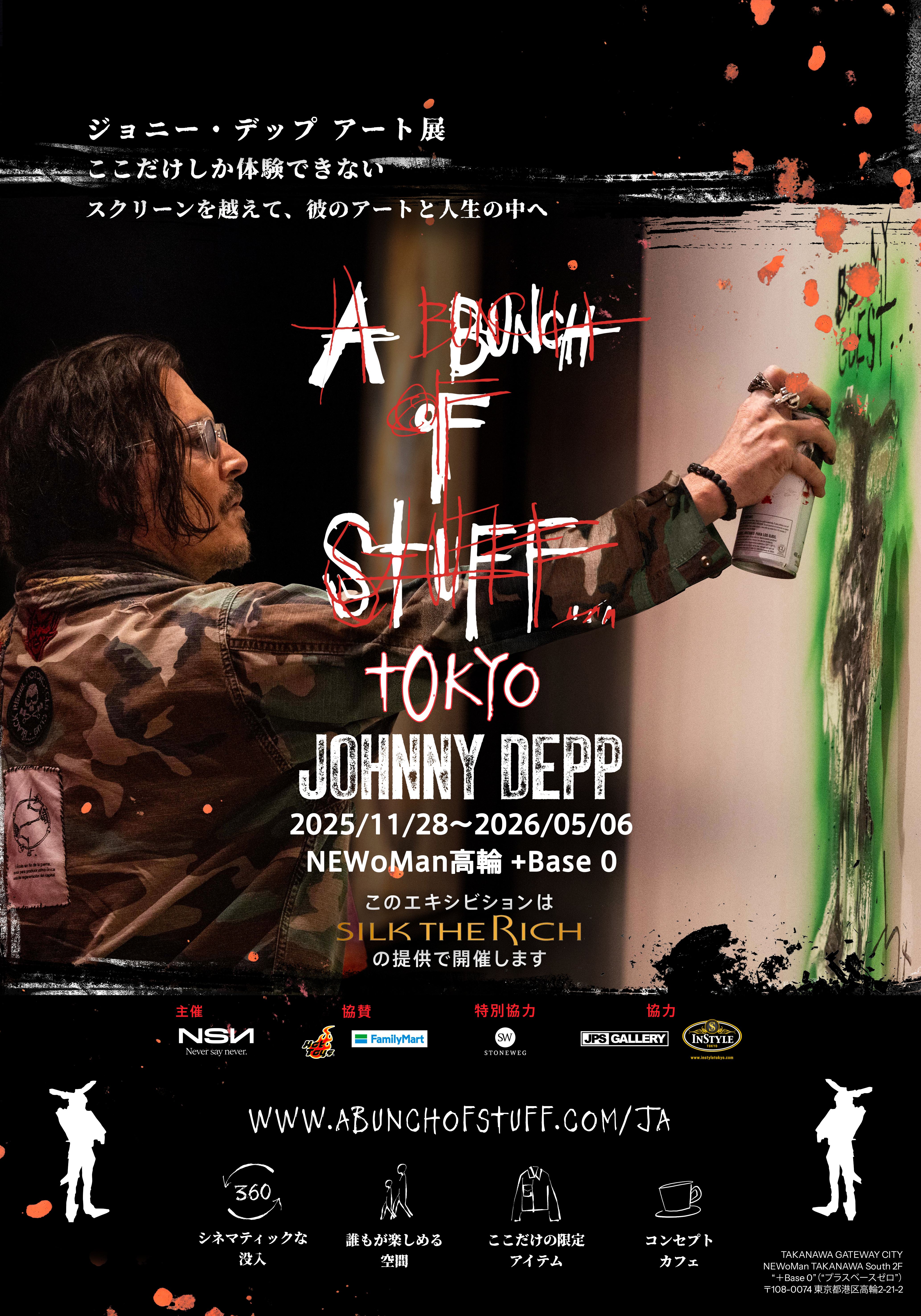 〜「いいなっ」の瞬間を創ろう。〜をビジョンに掲げ、シルクの魅力を発信する製品「SILK THE RICH」の販売を行う株式会社THE RICH(本社:東京都渋谷区、代表取締役社長兼CEO/founder 三浦裕太)は、2025年11月28日(金)より東京・ニュウマン高輪で開幕するジョニー・デップ氏没入型アート展「A Bunch of Stuff – Tokyo」のメインスポンサーに就任いたしました。