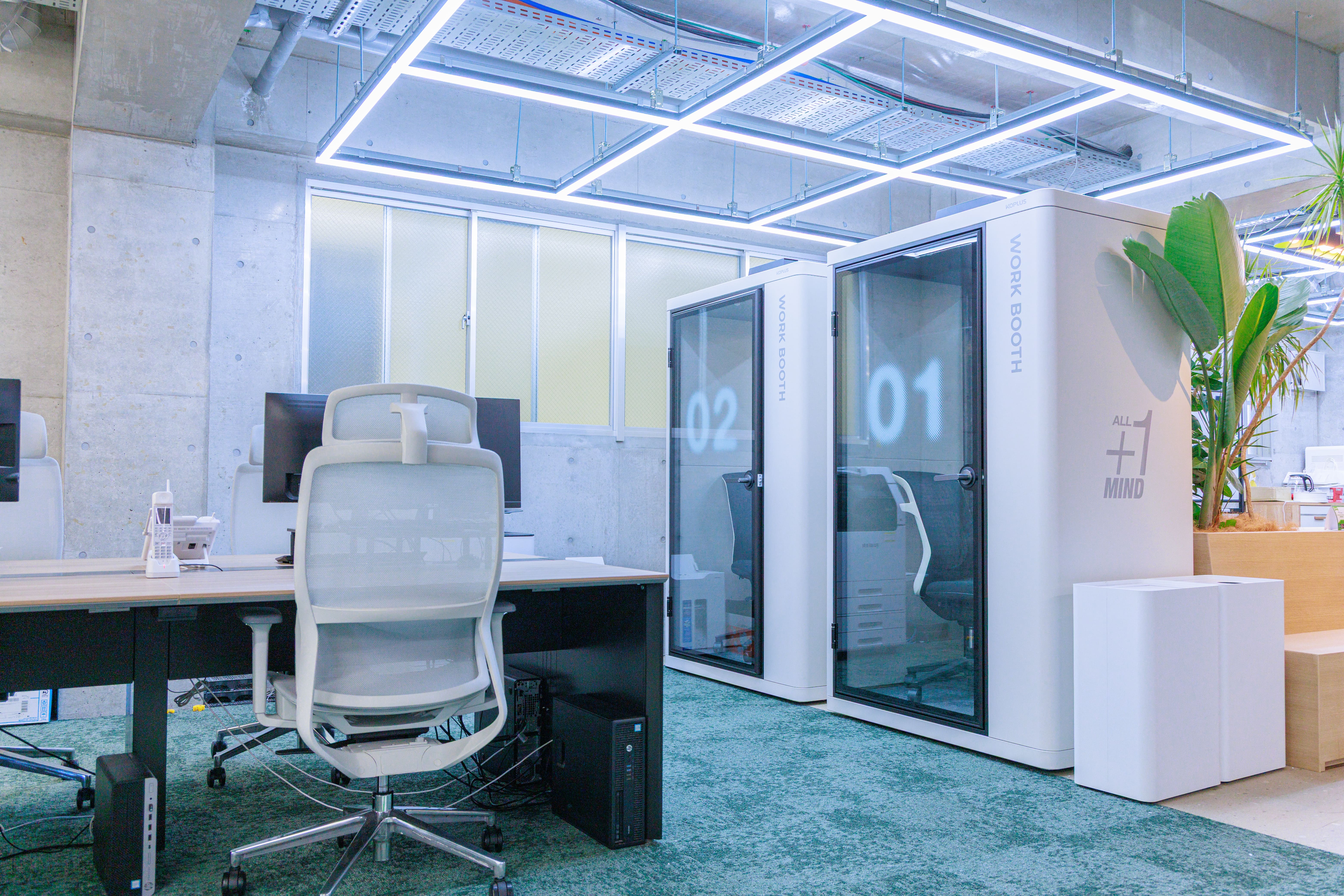 オフィスはフリーアドレスやべンチ型の休憩スペースを導入し、好きな場所で自由に働ける空間に仕上げました。さらに、Zoomブースやリカバリールーム、仮眠室など、今の時代の働き方に合った設備も整えています。色やアートを積極的に取り入れ、仕事の場でありながら創造性や楽しさを感じられる空間を実現できたのが一番のポイントだと思います。