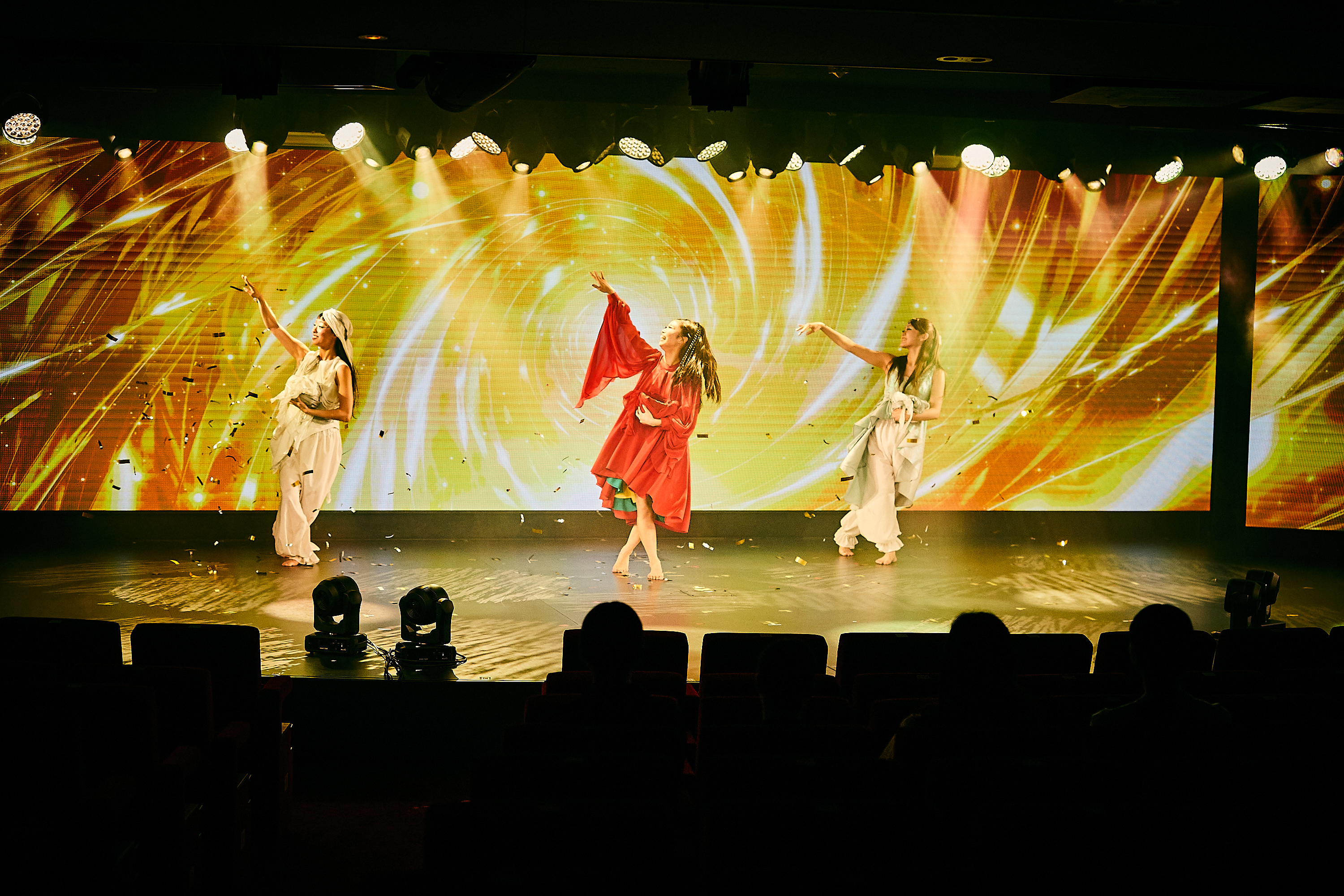 「飛鳥Ⅲ オリジナルパフォーミングアーツ」は、2025年7月20日に就航した郵船クルーズ株式会社の新造客船「飛鳥Ⅲ」のエンターテインメント空間「リュミエールシアター」で上演されるエンターテインメントプログラムで、最先端のデジタル技術を駆使し、ホログラフィックスクリーンやLEDスクリーンの幻想的でダイナミックなデジタルアート映像とダンスパフォーマンスが融合した新感覚のイマーシブ(没入型)パフォーミングアーツです。