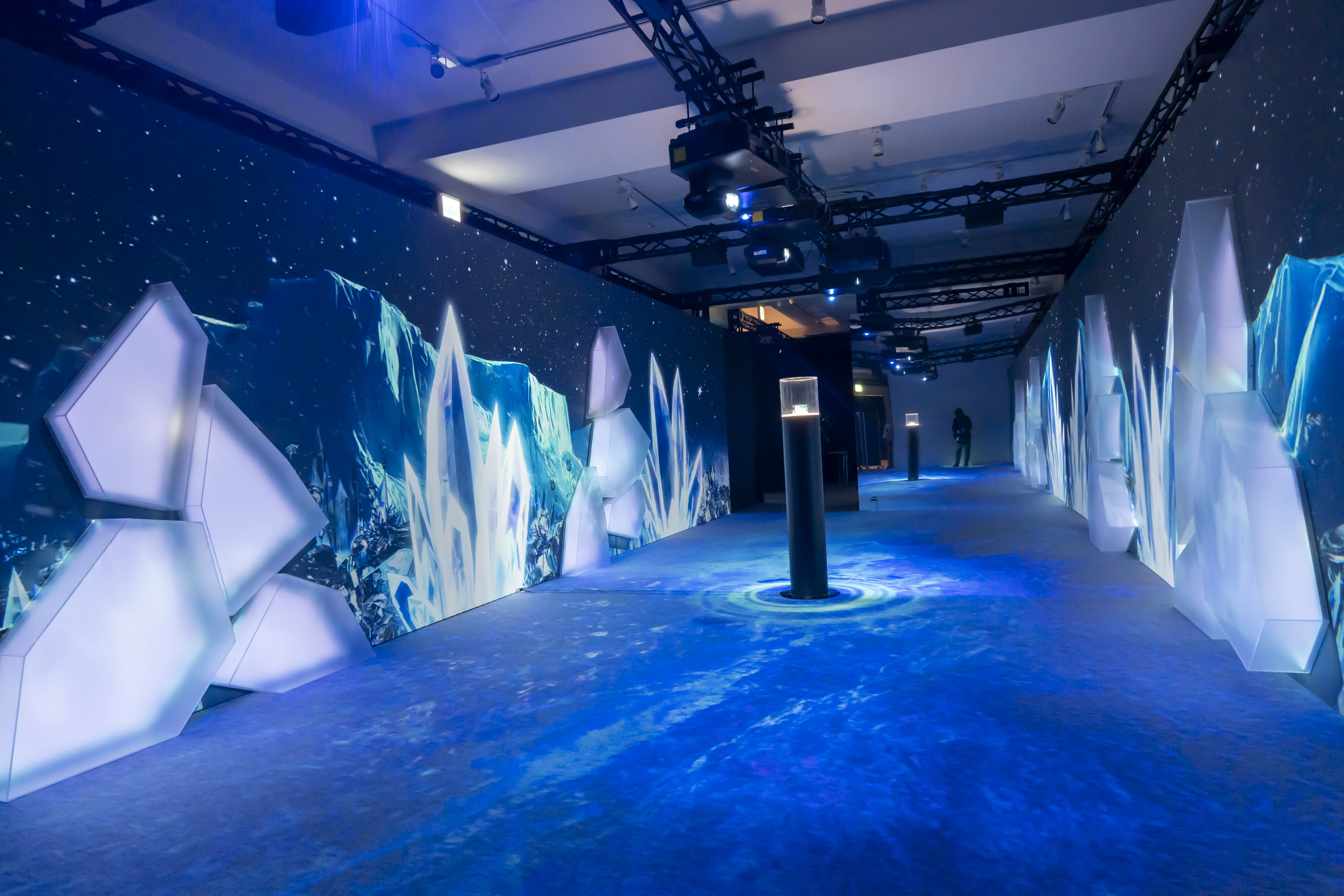 本ポップアップストアは、プルーム・オーラのリミテッドカラー「アクアグリーン」の発売を記念し、“都会のオアシス”をコンセプトに、イマーシブ体験、ラウンジでのくつろぎ、ショッピングまでをワンストップで楽しめる期間限定スポットです。ネイキッドは、その中核となる2Fフロアのイマーシブ体験をプロデュース。来場者のアクションに反応するインタラクティブな映像演出で、光に包まれる没入空間の中、“格別の一服”を五感で味わうひとときを提供します。2Fでは、「アクアグリーン」を想起させる植物の世界と、「EVO新メンソール」を想起させる氷の世界を対比的に表現。見て、触れて、息を吹きかけるといった参加型の体験を通じて、空間そのものが呼応するような非日常をお楽しみいただけます。さらにフロア内にはフォトブースを常設し、ブース内で撮影すると、まるで自分自身が凍りついたかのような写真撮影体験も可能です。撮影した写真は無料でお持ち帰りいただけます。