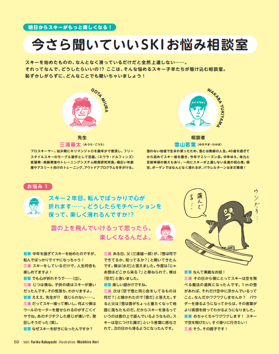 スキーを始めたものの、なんとなく滑っているだけだと全然上達しない……。 それってなんで、どうしたらいいの !? ここは、そんな悩めるスキー子羊たちが駆け込む相談室。 恥ずかしがらずに、どんなことでも聞いちゃいましょう!