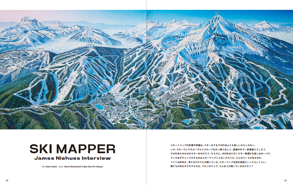 スキートリップの計画や準備は、スキーをするその行為よりも楽しいかもしれない。 いや、スキーウェアやゴーグルとグローブを引っ張り出して、部屋の中で一度着替えてしまう、 その行為そのものがスキーなのだろう。もちろん、次の休日に行くスキー場選びも楽しみの一つで、 そこで必ずチェックするものはスキーマップじゃないだろうか。どんなコースがあるのか、 リフトは何本か、考えるだけで心が踊っている。スキーマップは宝の地図といってよいくらい、 僕たちの目をキラキラさせる。でもこのマップ、どんな人が描いているのだろう?