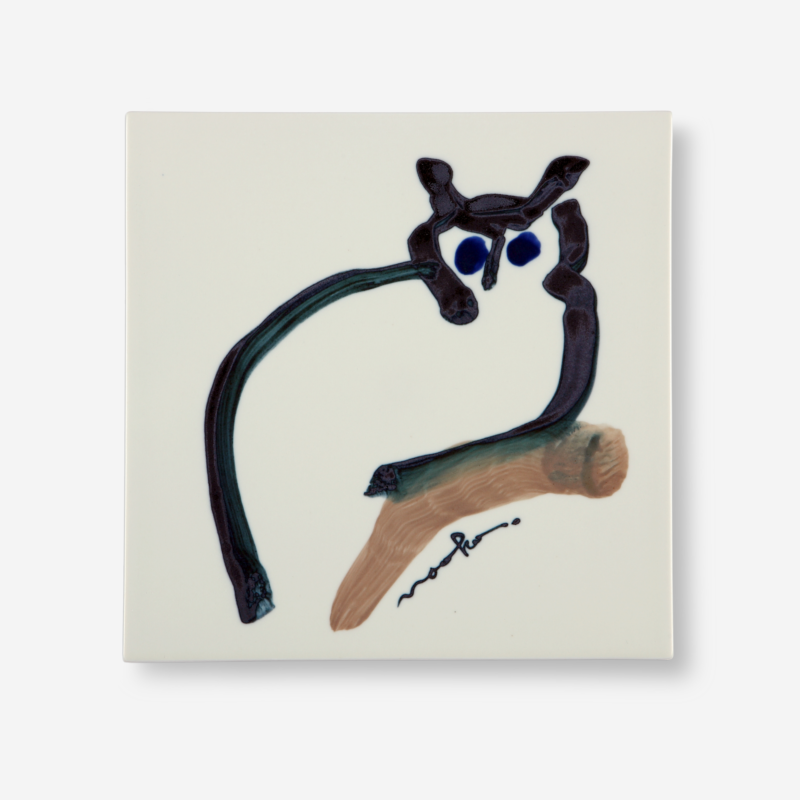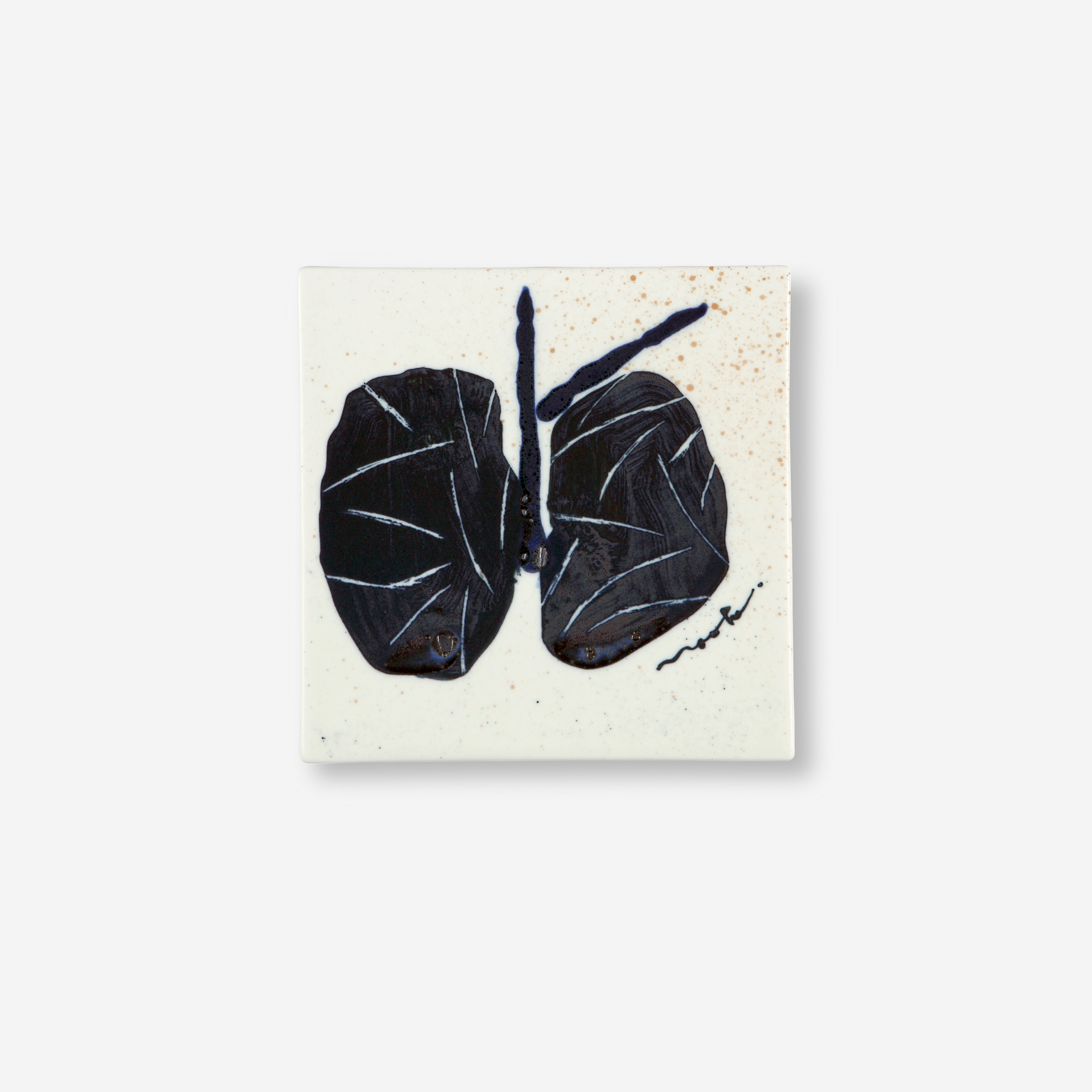 本展では、はしもとなおこが陶板制作に挑戦し、通常の創作で多⽤する「黒」、「⻘」に、新たに「茶」を加えた3⾊のみで構成する、動物や植物をモチーフとした作品を展⽰します。異なる釉薬を組み合わせ、瀬⼾焼の技法に新たな試みを加えて制作された全40点が並び、釉薬の質感や焼成による⾊の変化が織りなす豊かな表情をお楽しみいただけます。