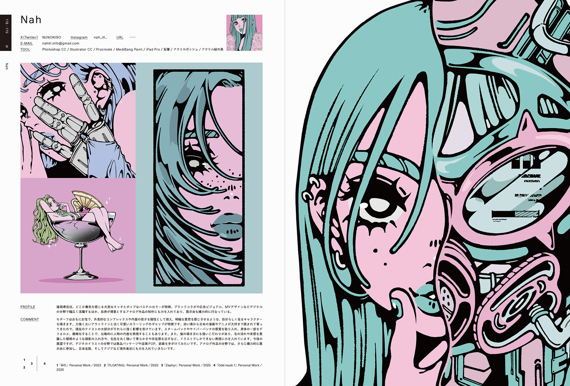 『ILLUSTRATION 2026』では、多種多様なポップカルチャーから刻々と変化するネットカルチャーまで、日本のイラストシーンを横断した実力派作家150名を掲載。全掲載作家が前書『ILLUSTRATION 2025』から入れ替わり、現代イラストレーションの最先端に触れることができます。