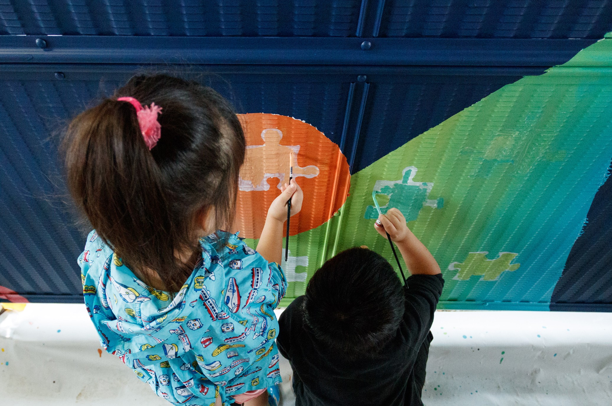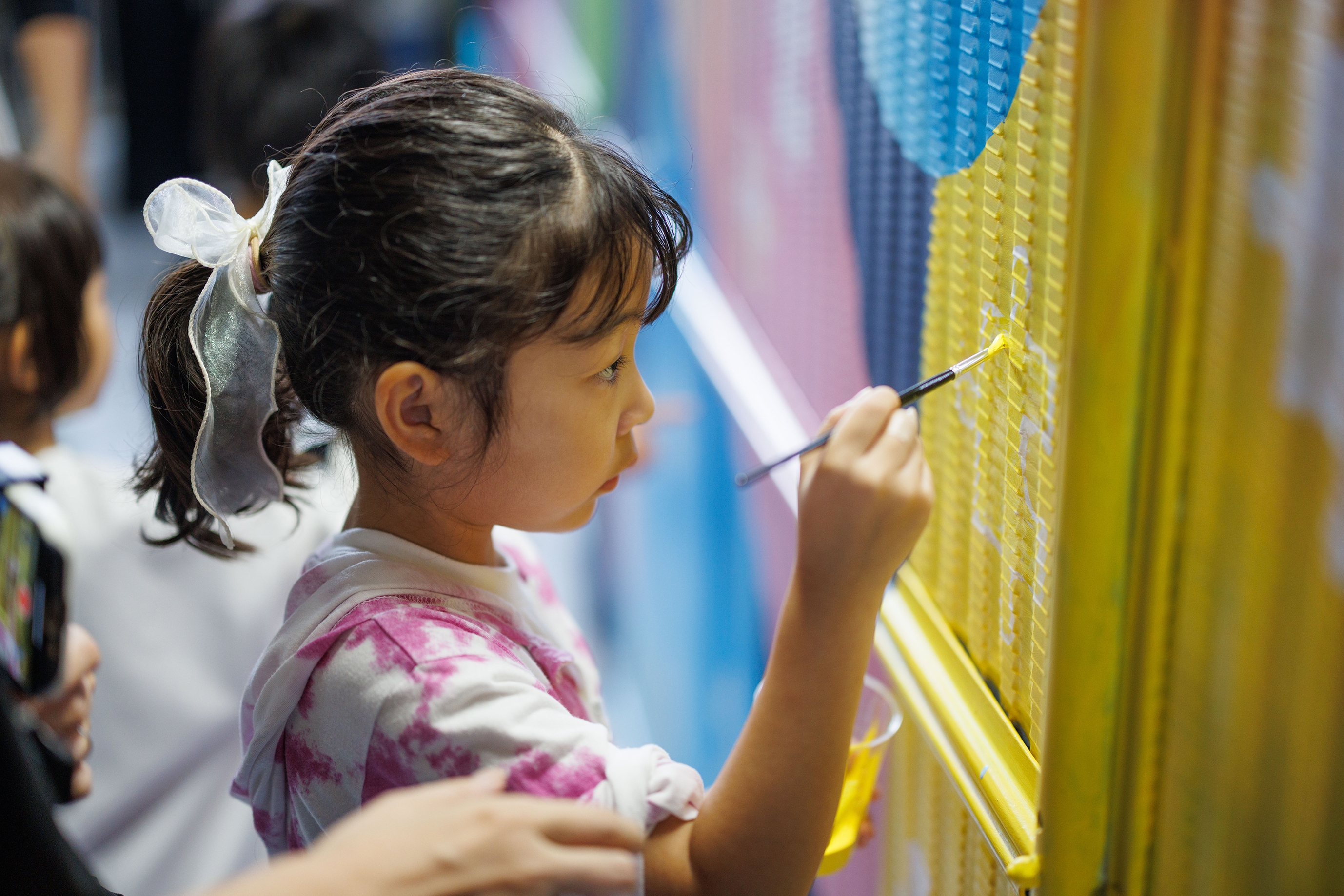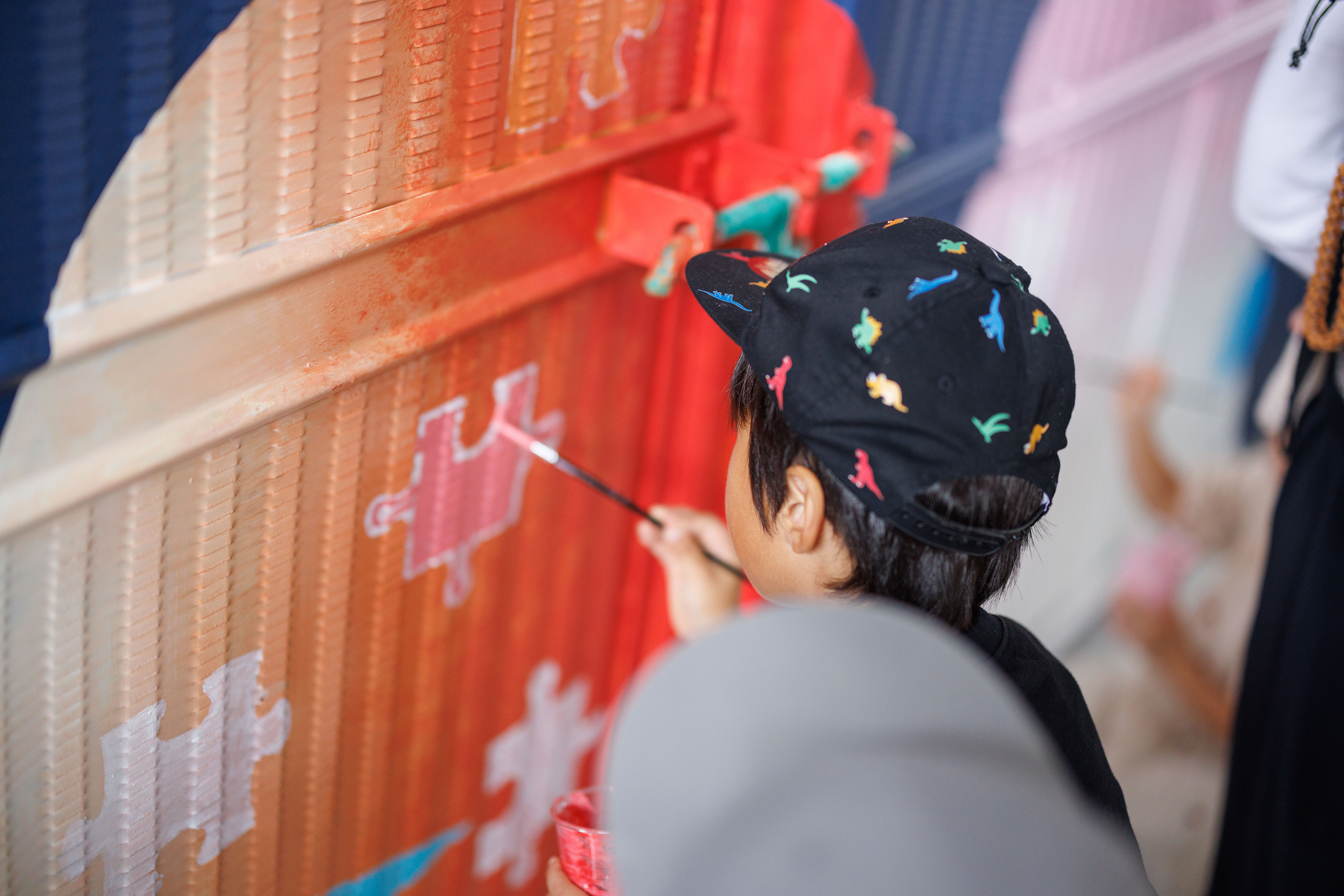 当日は、アーティスト SIGHTRIP(サイトリップ) 氏がライブペイントを披露。訪れた人々の目の前でアートが形作られる様子は圧巻でした。さらに、3歳から小学生までのこどもたちが参加するペイントワークショップも開催。自由な発想で色を選び、思い思いに筆を走らせ、作品の仕上げを担いました。