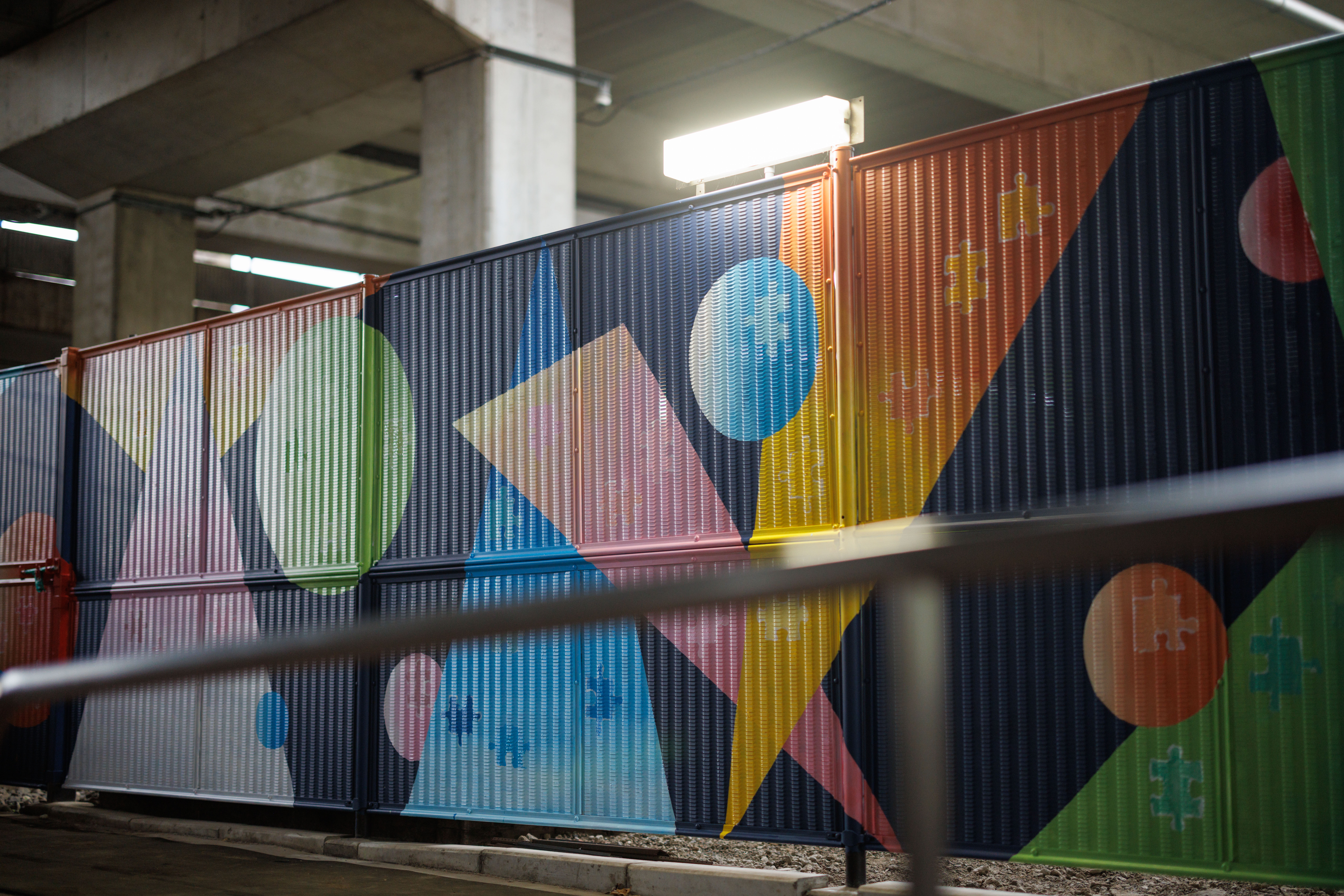 その結果、アーティストの創造力とこどもたちの感性が融合した、ハートフルでカラフルな屋外フェンスアートが完成しました。デザインはカラフルで幾何学的に構成され、コトニア赤羽をテーマに、この場所に集まる地域の人々の想いをパズルのピースに見立て、こどもたちの手で塗り上げられました。また、プロジェクトに際して実施したアンケートから、多くの地域の方々の願いや希望を感じながら制作が行われました。今回のプロジェクトを通して、こどもたちは自分の表現を街に残す体験を得るとともに、訪れる人々にもアートを通した特別な時間を提供します。