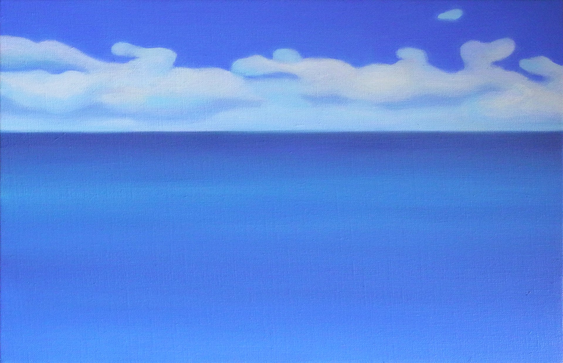 果物や手足といった身近な存在を、有機的な形態と柔らかな中間色で表現する油絵を制作しています。重なりや透過によって生じるわずかな変化に関心を持ち、そこに現れる描かれたもの同士の関係性や、視点によって変化するイメージを描くことを試みています。近年は、実際に目にした海や空をモチーフに、風景の再現性と抽象性のあわいを探る制作にも着手しています。
