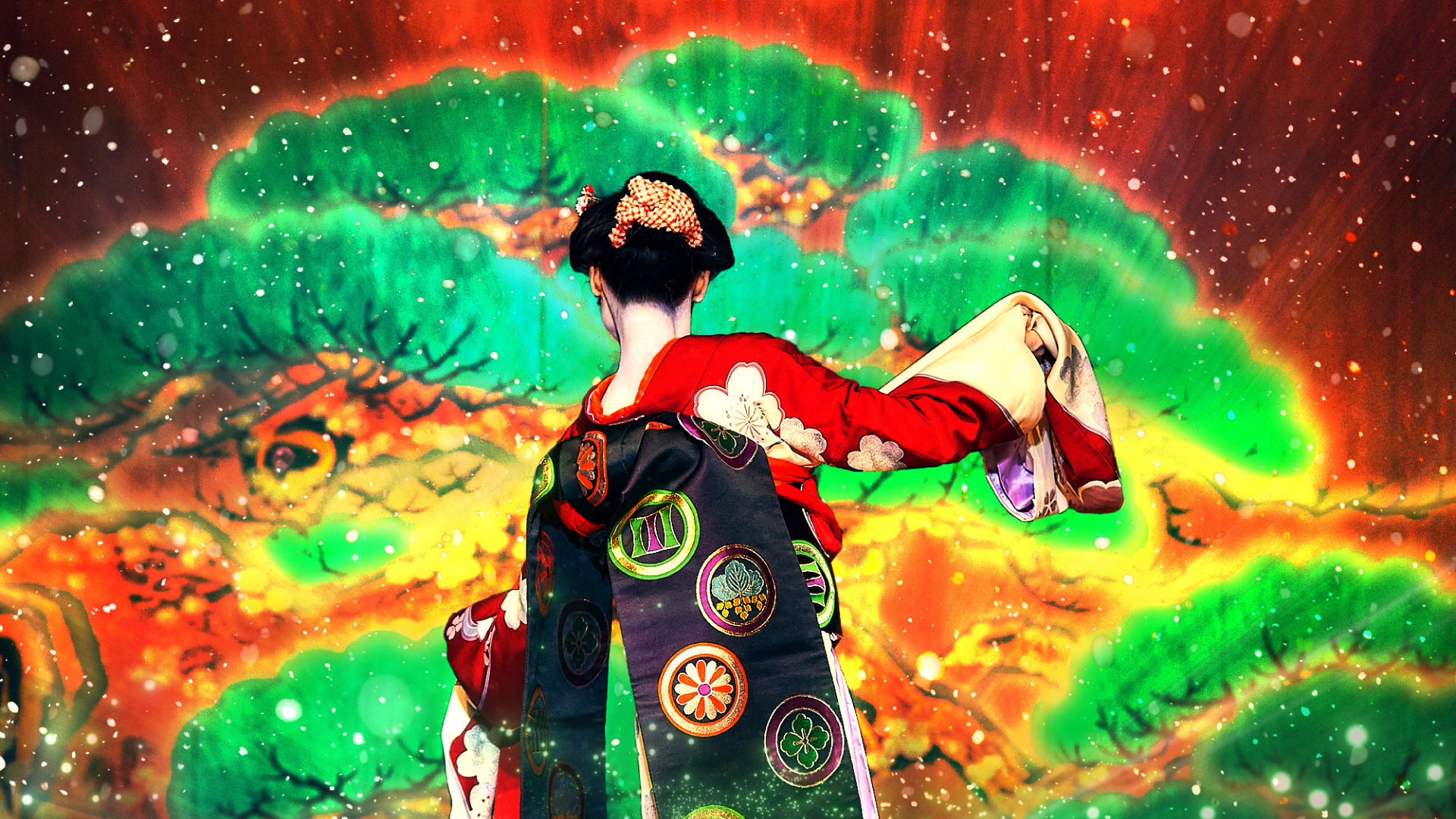 大阪発、世界へ。大阪を拠点に海外でも精力的に活動する扇寿舞踊団がお送りする日本舞踊の古典演目、舞台上へのプロジェクションマッピングによるデジタルアート映像が融合するここでしか出会えない特別なプログラム