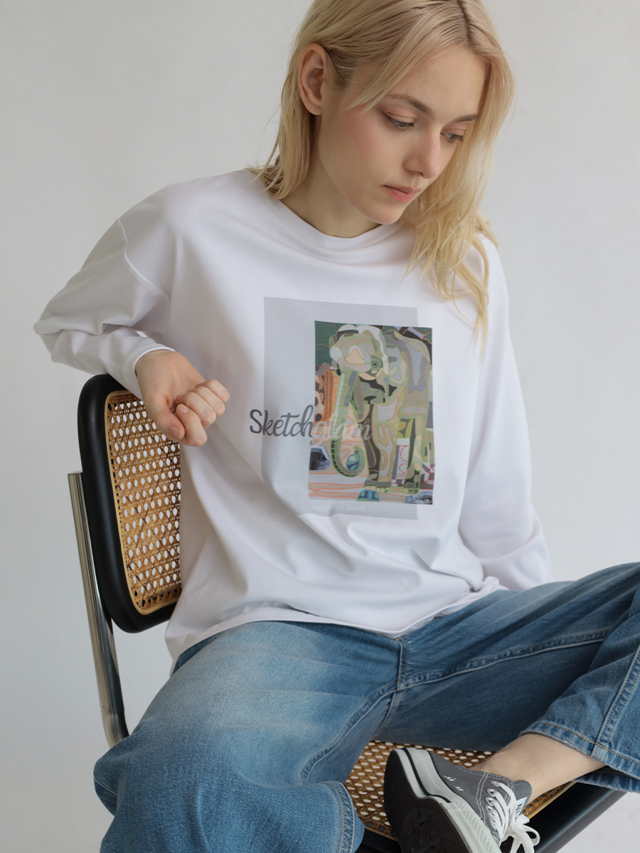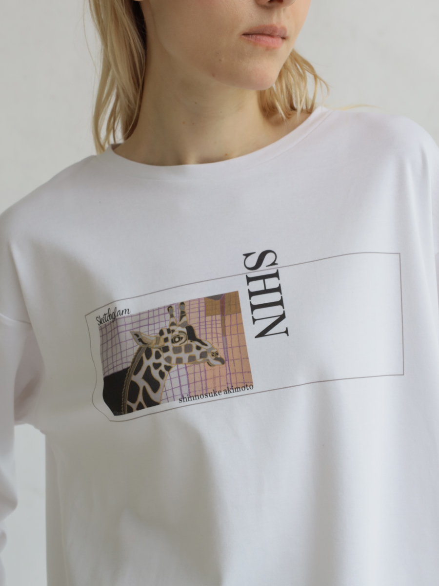 Shinさんのアート作品をプリントしたロングスリーブTシャツ。前後差のあるデザインで、アウトスタイルでもこなれた印象に。性別・年齢問わず、メンズ・レディース共に着回しやすい一着です。