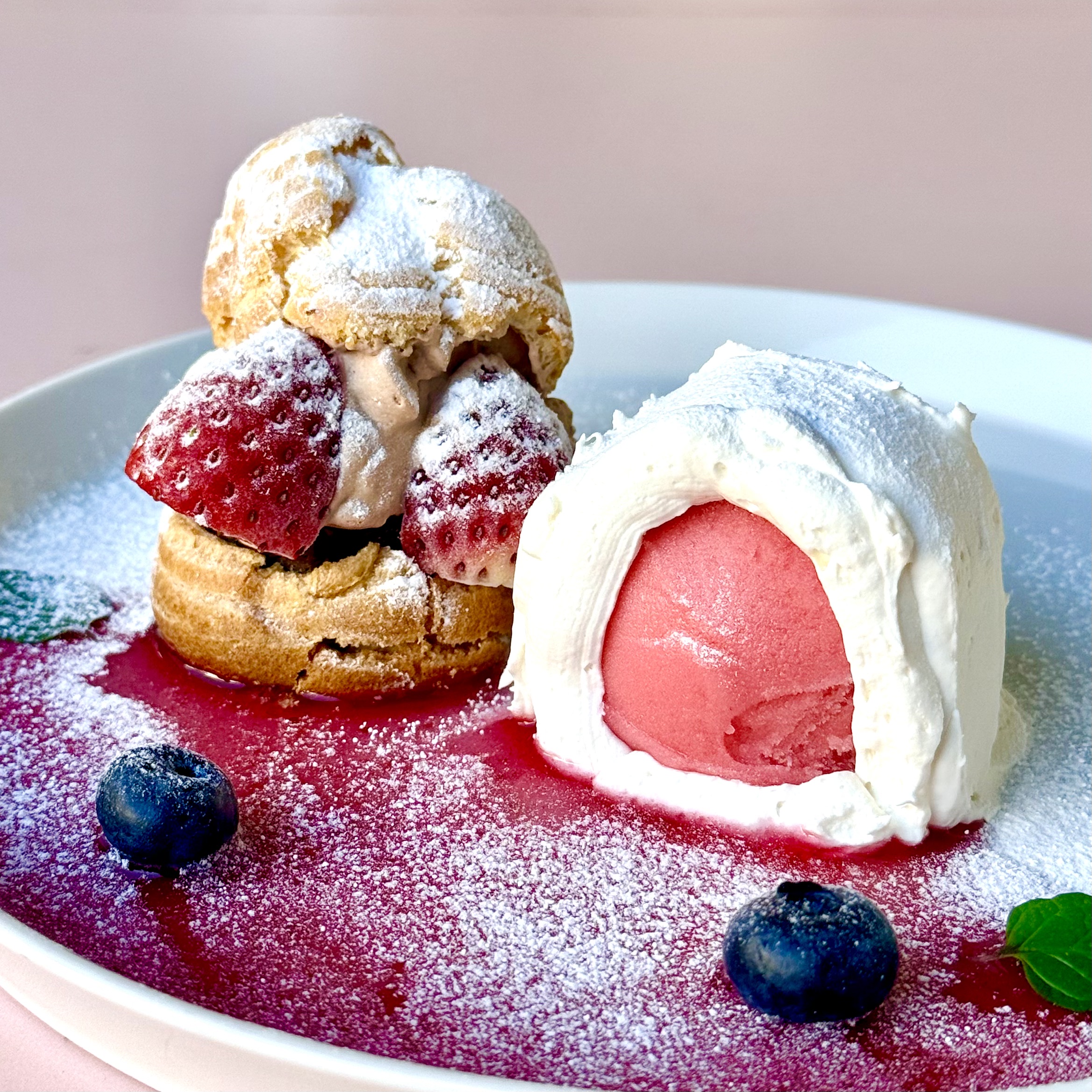 かつて馬車道十番館本館喫茶室にてご提供していた「かまくら」をモチーフに今回の企画展「いつもとなりにいるから」のコンセプトに重ね合わせた一品。