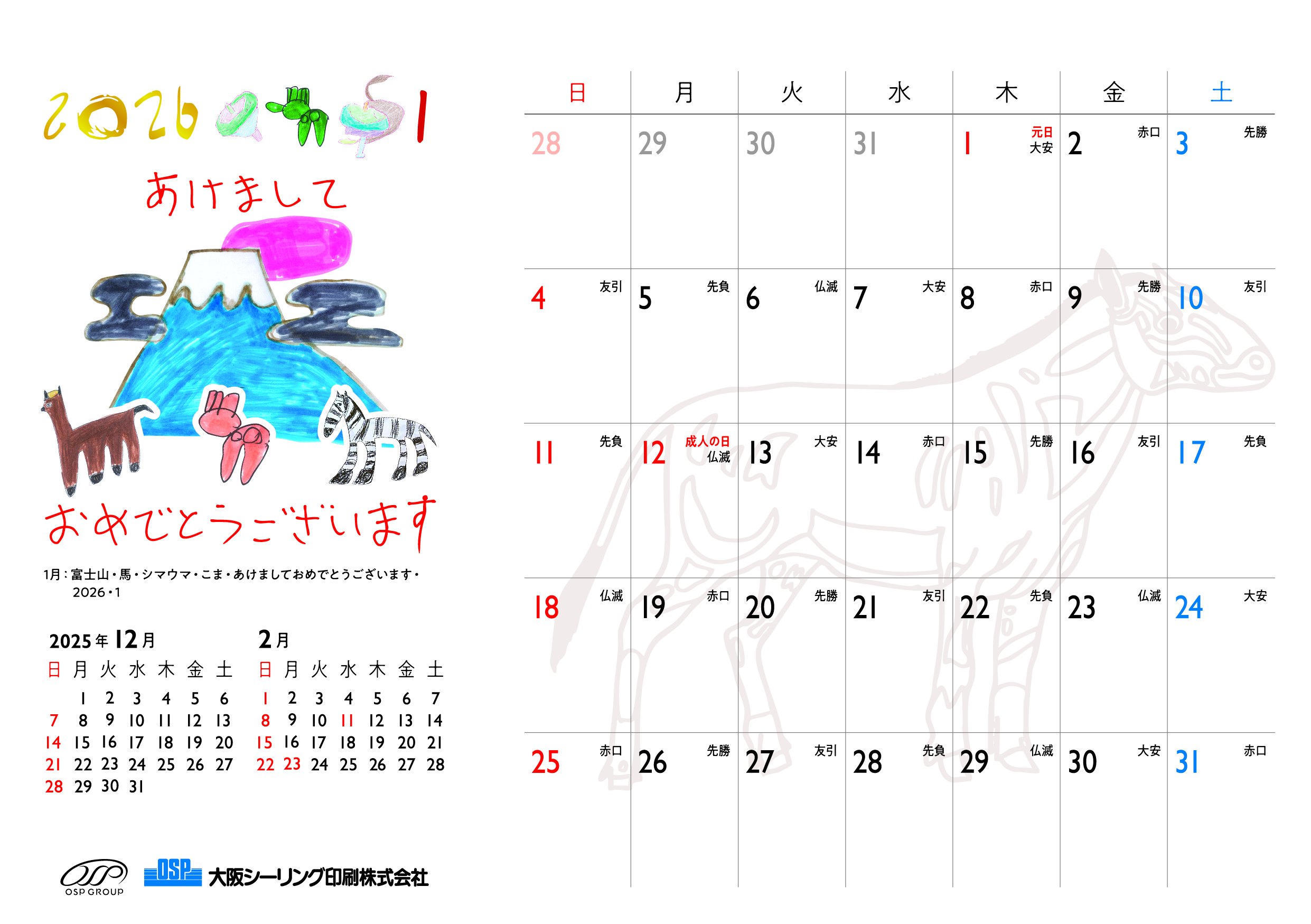 1月 富士山・馬・シマウマ・こま・あけましておめでとうございます・2026・1