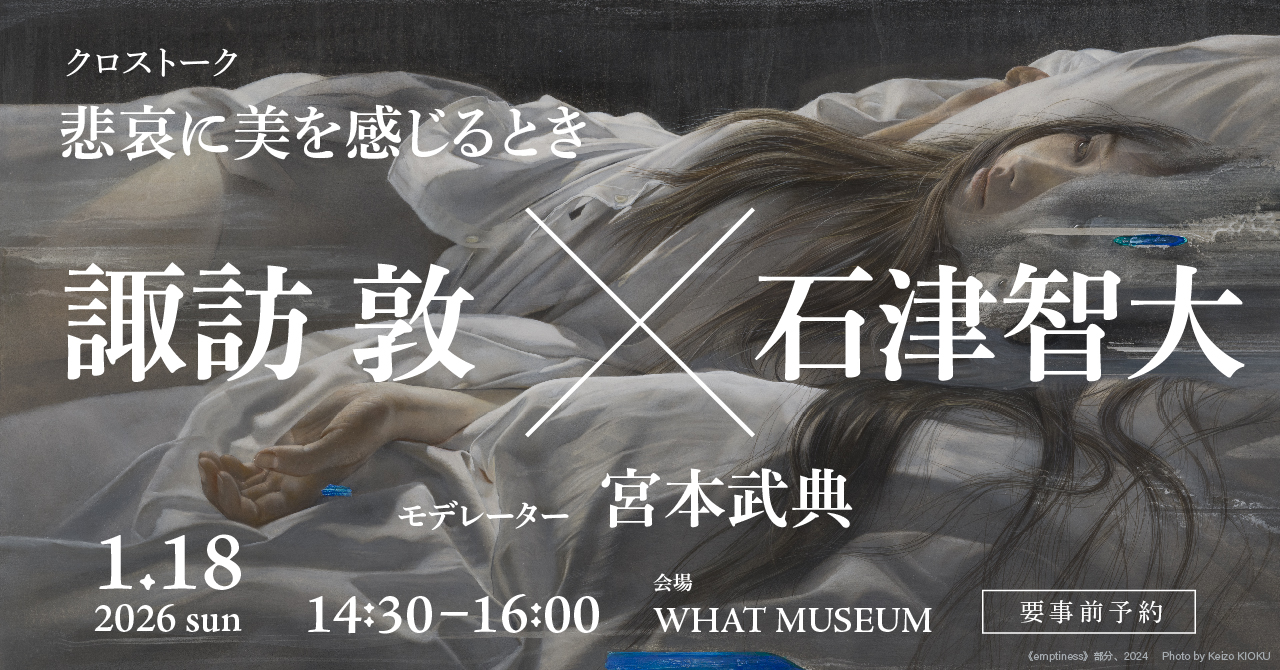 寺田倉庫株式会社(東京都品川区 代表取締役社長:寺田航平)が運営する現代アートと建築のミュージアム「WHAT MUSEUM(ワットミュージアム)」は、2026年1月18日(日)にトークイベント「悲哀に美を感じるとき」を開催いたします。本企画は、開催中の展覧会「諏訪敦|きみはうつくしい」に関連したプログラムです。