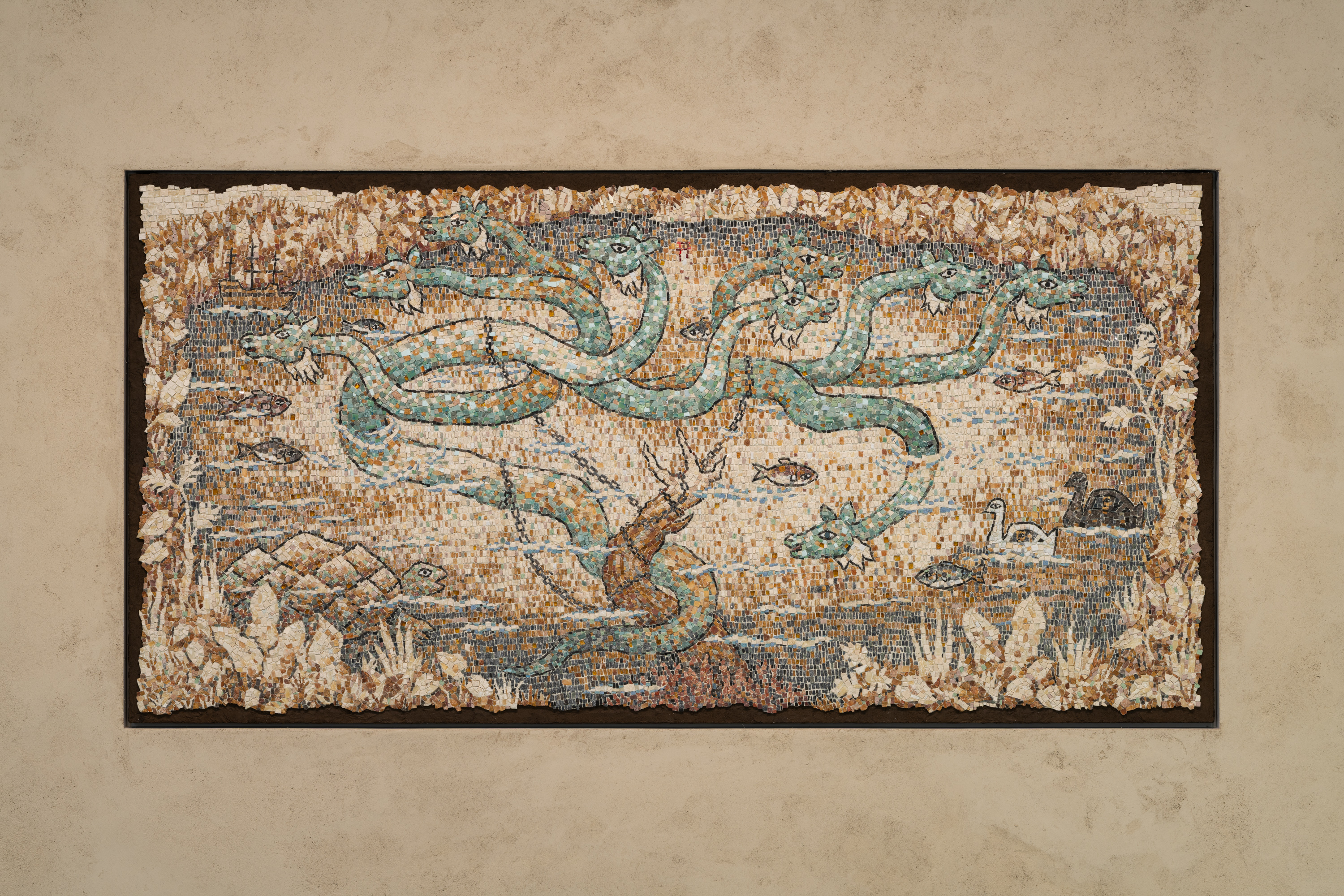 HIRAKU Project は、過去にポーラ美術振興財団の助成を受けた作家を紹介する展覧会シリーズです。第 17 回目となる今回は、細かく砕いた色とりどりの石を組み合わせて画面をつくる、伝統的なモザイク技法を用いる気鋭の若手作家、ヤマダカズキを紹介します。
