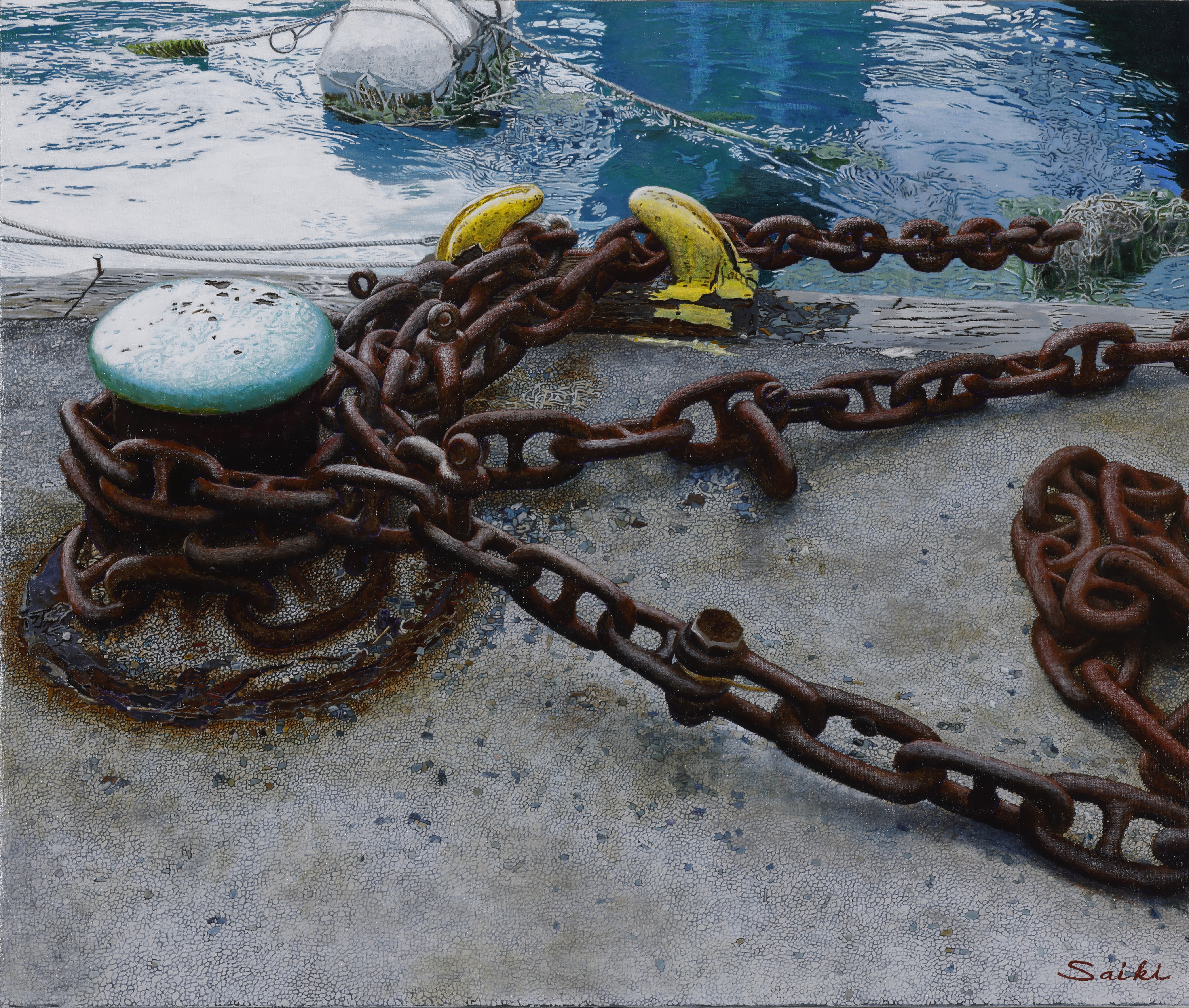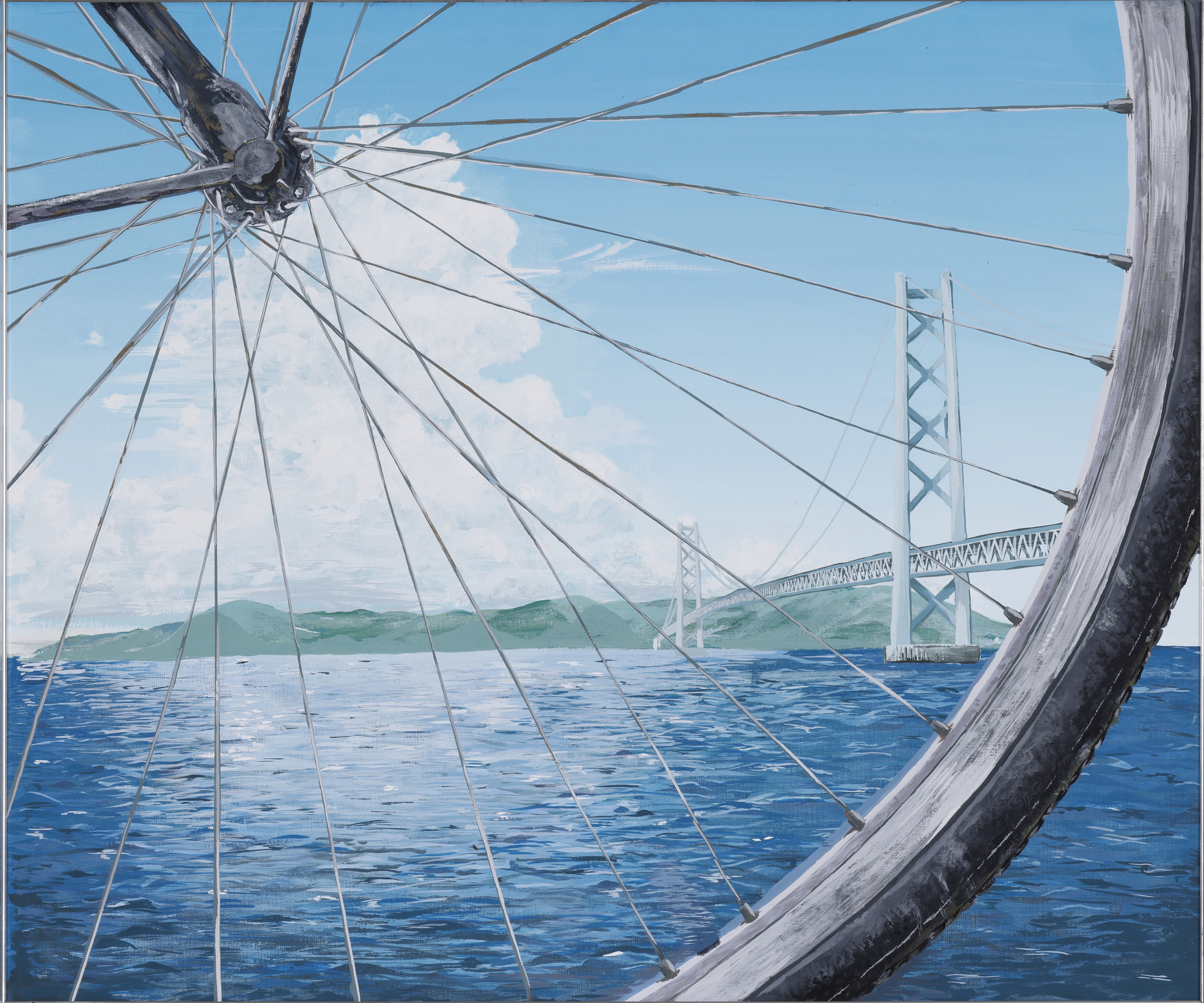 「瀬戸内海と旅」のイメージで描かれたF20号横型のアクリル画