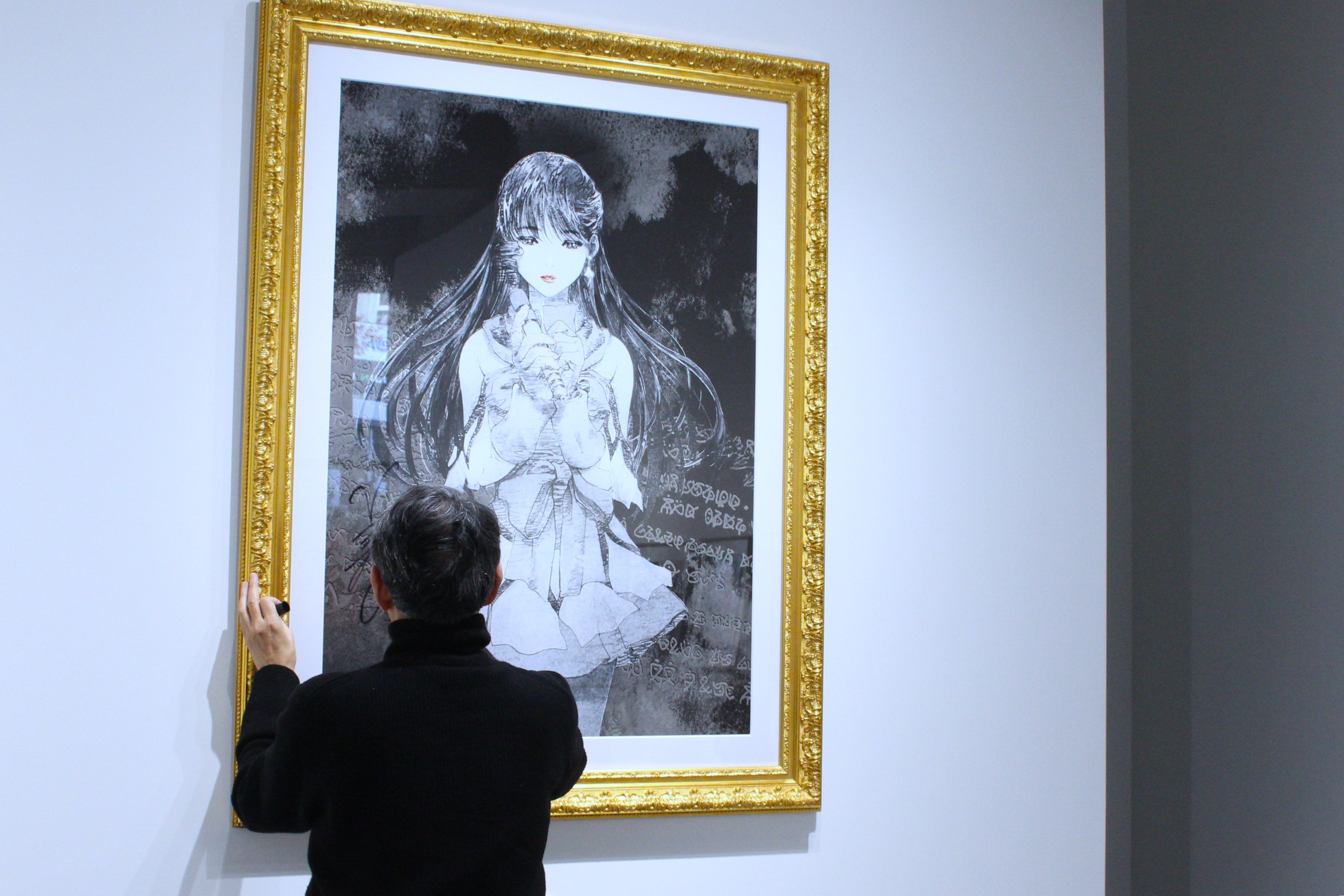 除幕式では、本会期のメイン作品である「託された願い」に、その場で美樹本先生がサインを入れる様子が披露され、会場からは大きな拍手が湧き上がりました。