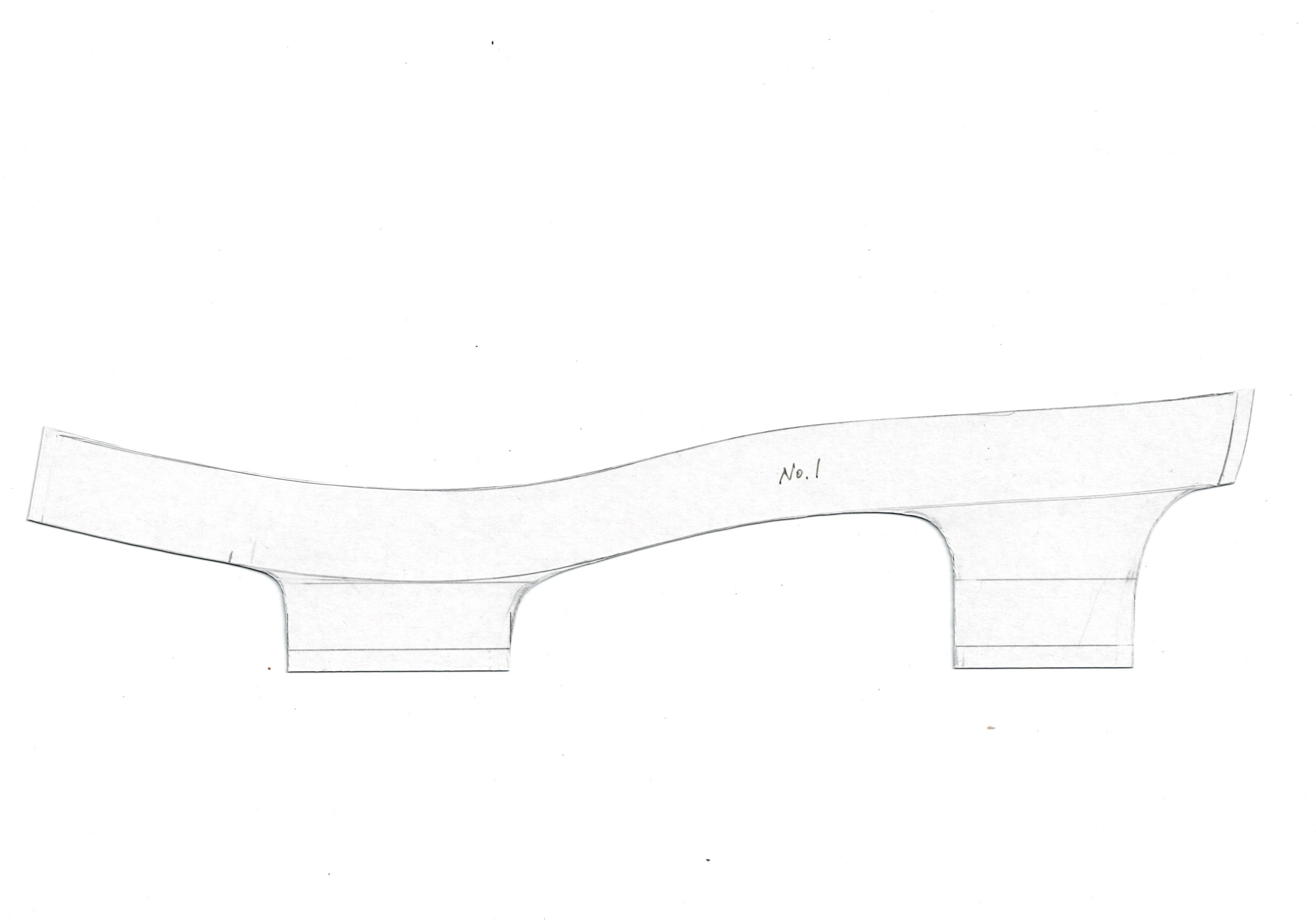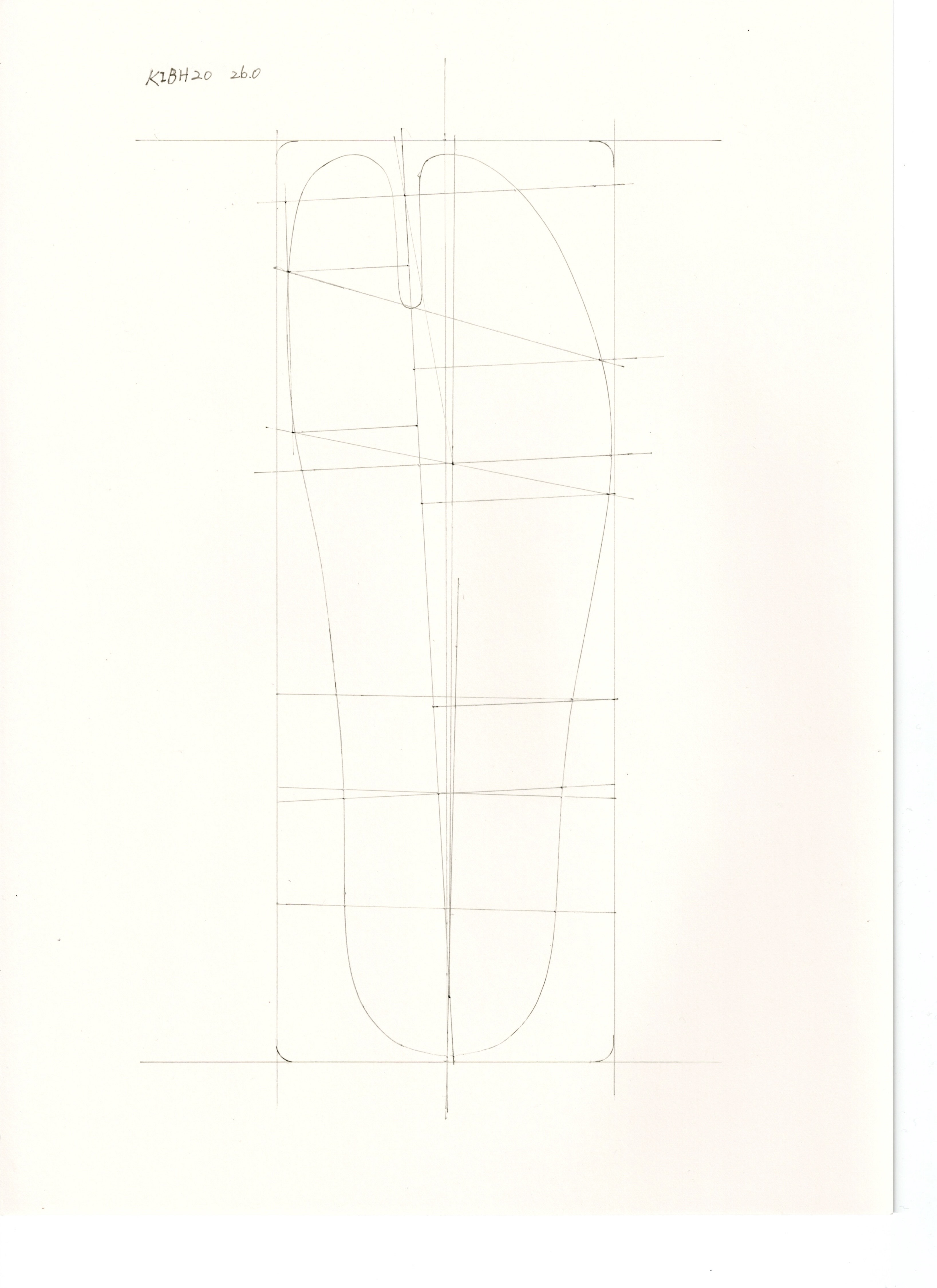ソールの底面曲線は、足裏の形状や接地の流れを靴型の設計に基づきデザインしました。革靴製作を通じて培ってきた足の構造や歩行に関する知見をもとに、下駄の構造と向き合い歩きやすさを考慮しています。日本の履物文化における二種類の下駄の形式を踏まえ、一本歯下駄仕様と二本歯下駄仕様を展開しています。一本歯下駄は接地面が一点であることから坂道や不整地においても重心移動がしやすく、身体の軸を意識した歩行を可能にする構造です。山道や起伏の多い日本の地形で用いられてきた履物の特性に着目し、現代の履物として再解釈しました。二本歯下駄は安定性を備えた、より伝統的な下駄の構造です。日常的な歩行における安定感と日本の履物文化に根付いた形式美を重視した仕様となっています。