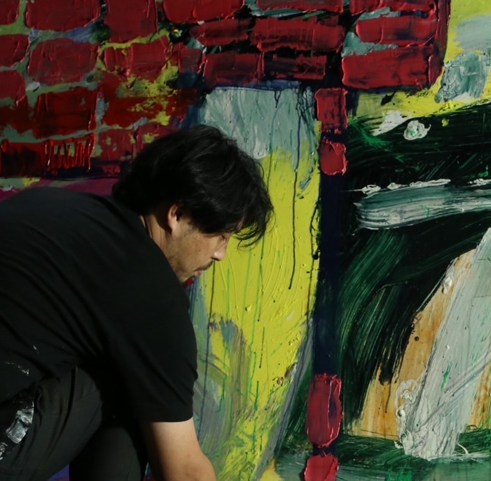 1986年福岡県生まれ。2007年日本デザイナー学院九州校卒業後、福岡を拠点に活動する。エロスとタナトスのあわいに揺れる己の感情を、キャンバスに叩きつけるが如き、激烈な筆致が生み出すエモーショナルな抽象表現を特徴としている。
