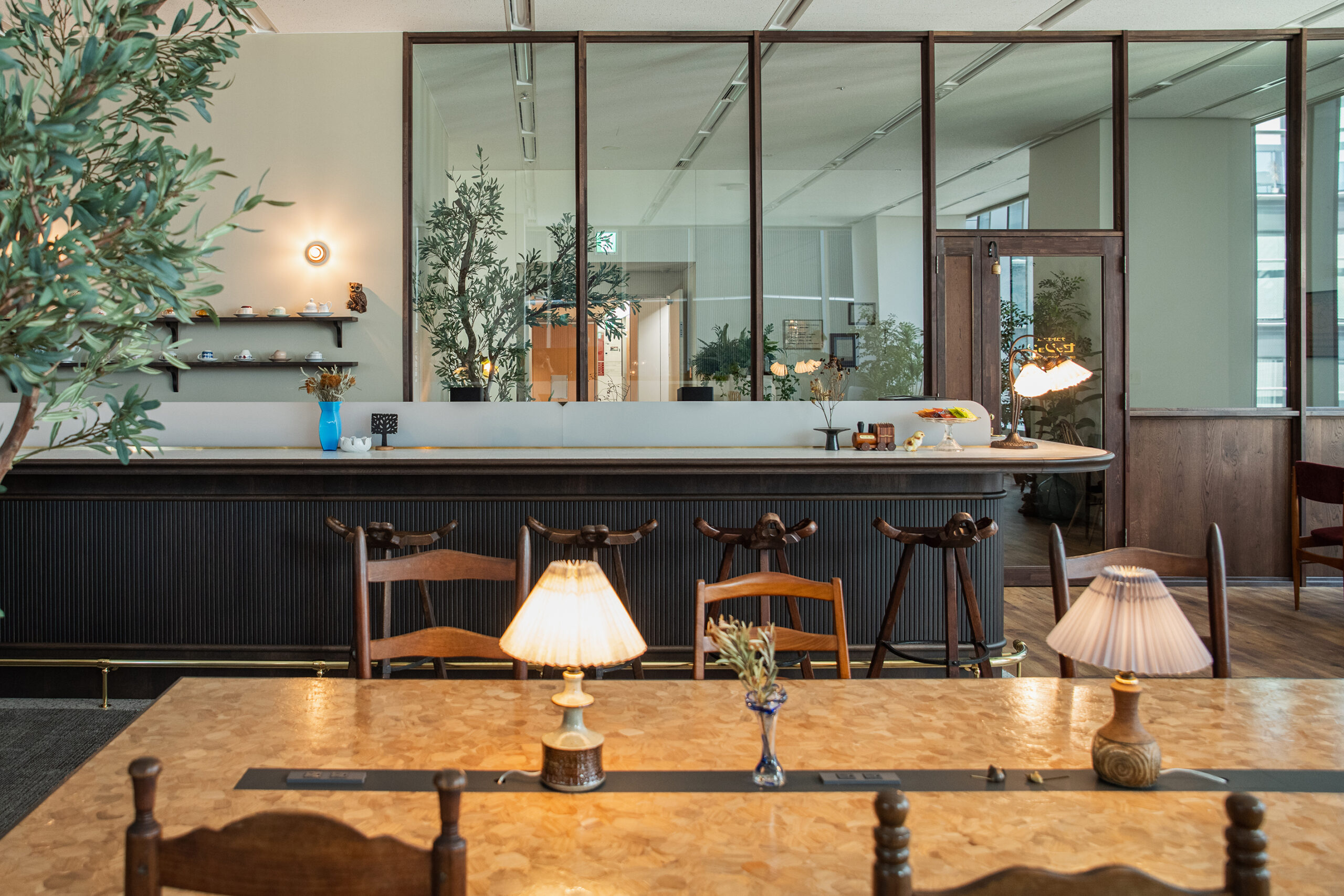 新オフィスは、名古屋に根付く“喫茶店文化”に着想を得ています。栄駅から名古屋駅への移転は、東京・大阪からのアクセス性を高め、社内拠点間の人の交流への期待がありました。他拠点から人を迎え入れる場としてヒントにしたのが喫茶店です。喫茶店は、モーニングに代表される“おもてなし”と、常連が集う“社交の場”という二つの顔を持つ存在です。NCMはこの文化をオフィスに置き換え、居心地の良さと社交性が共存する空間を目指しました。専門性や立場の異なる人々が交わり、音楽のセッションのように新たな価値が生まれていく。そんな想いを込め、新オフィスを「セッション」と名付けています。