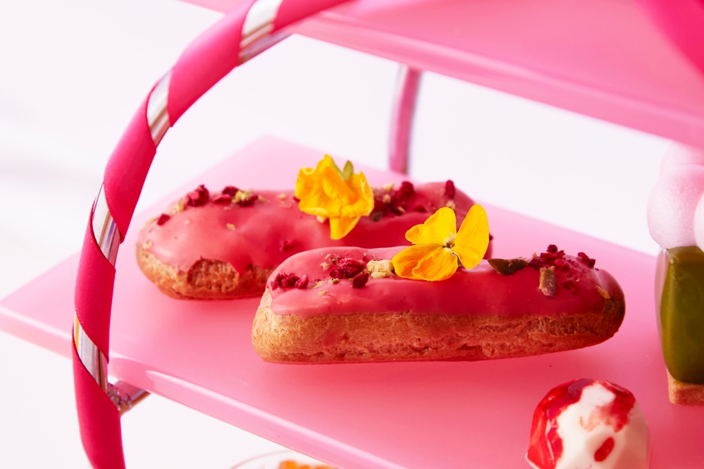 ティーパーティーがスタートしたところで、お店で焼いたパティシエ特製のスコーンをお届け。白・黄色・ピンクの3種の「イマジネーションホイップ」の中からお好みの味を見つけてみてください。