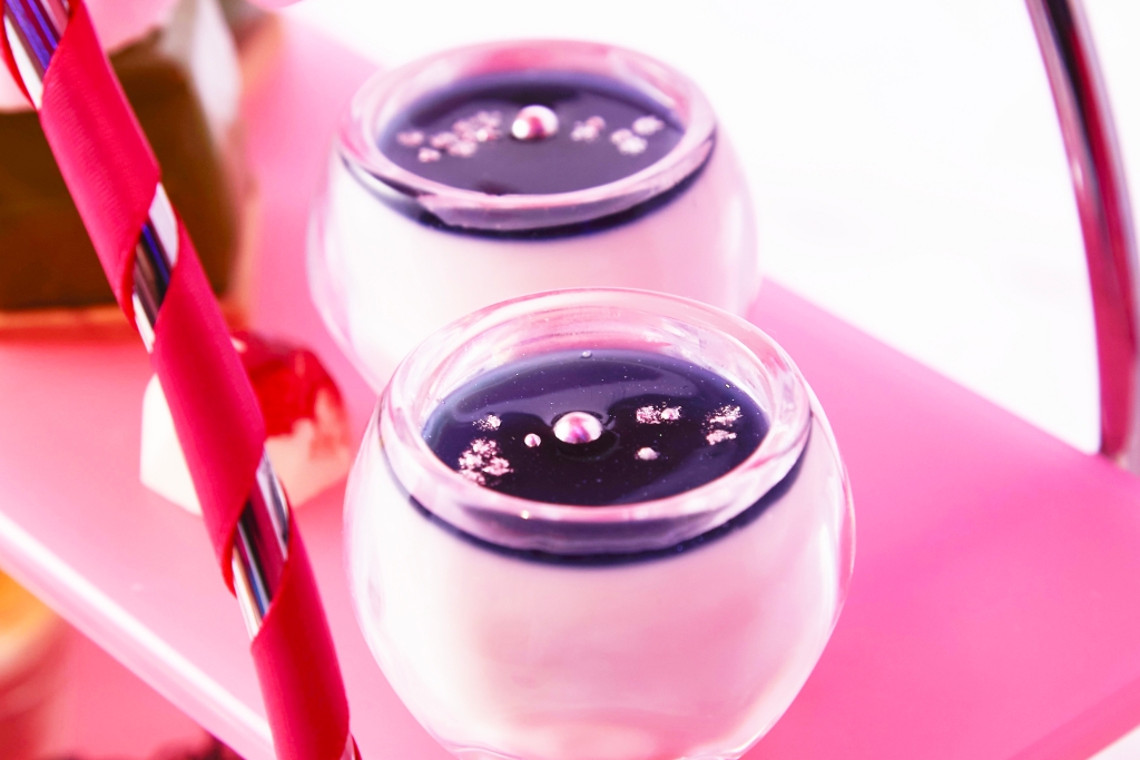 線路から飛び立って、空から宇宙空間まで走行できる「FUTURE TRAIN」をイメージした”無重力パフェ”。重力が復活して落っこちてしまう前に、お早めに召し上がりください。