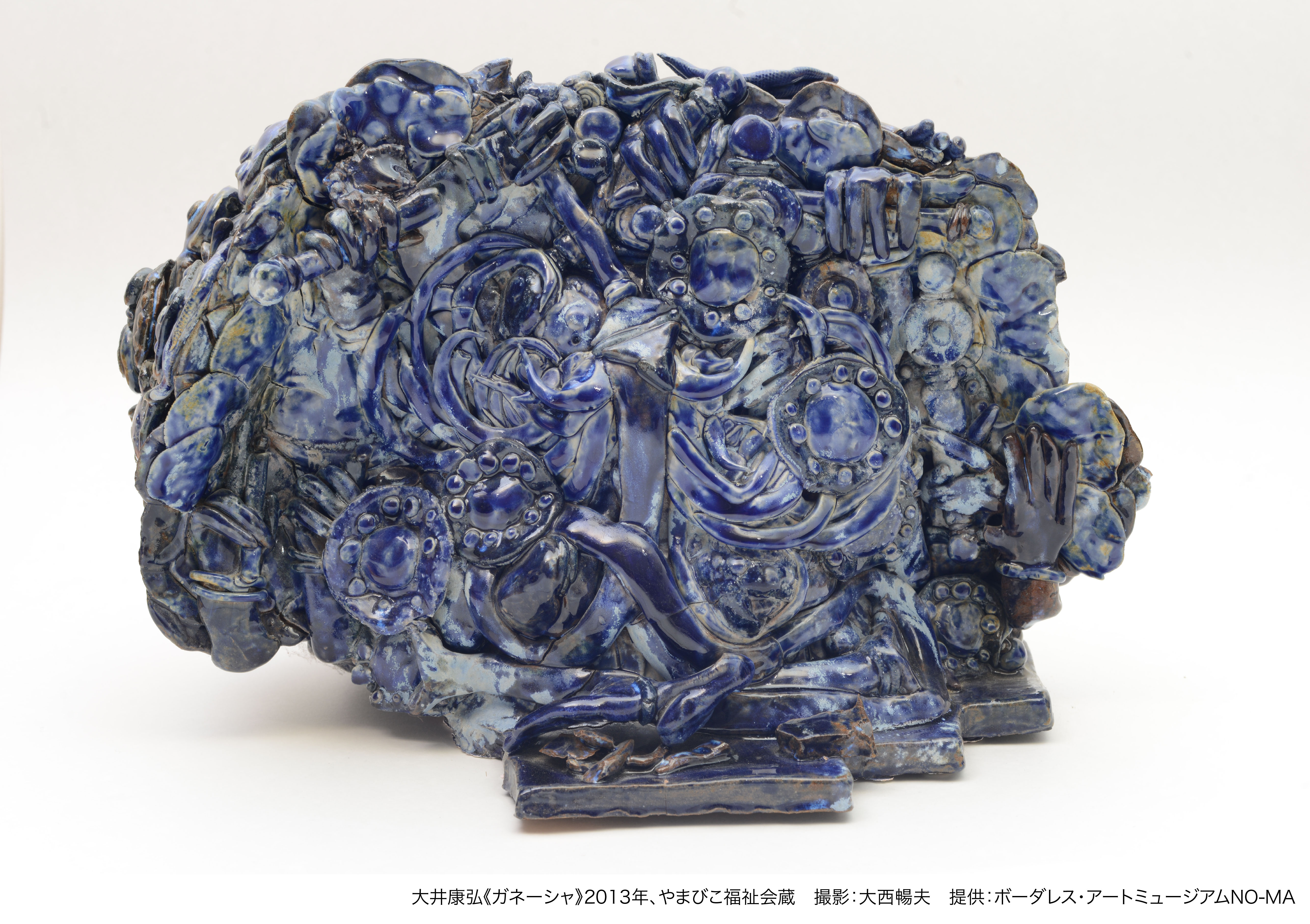 福祉施設のアトリエで創作を行う5名の作家と、その創作活動をサポートする2名の陶芸家の作品62件(うち陶芸作品57件、絵画5件)を紹介。花瓶や壺のように用途を持つ器から、「ガネーシャ」や動物の姿をかたどった作品、オブジェ的な造形作品まで、多様な陶芸作品が集結します。