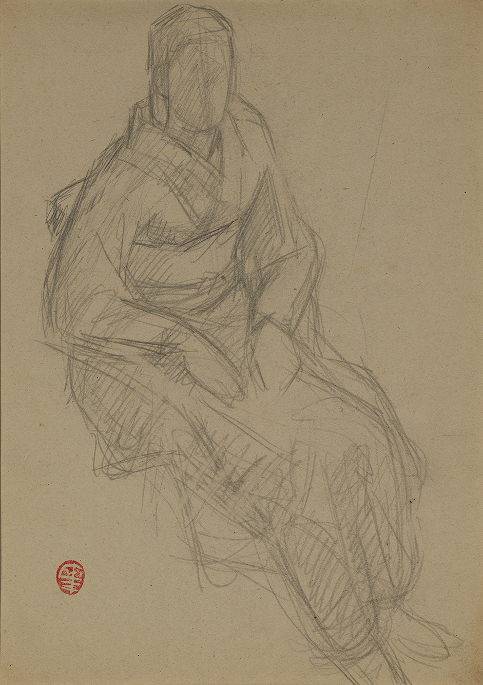 3. 飯塚⼩玕齋(1919-2004)タイトル・制作年不詳、鉛筆、紙 36.1×26.6cm