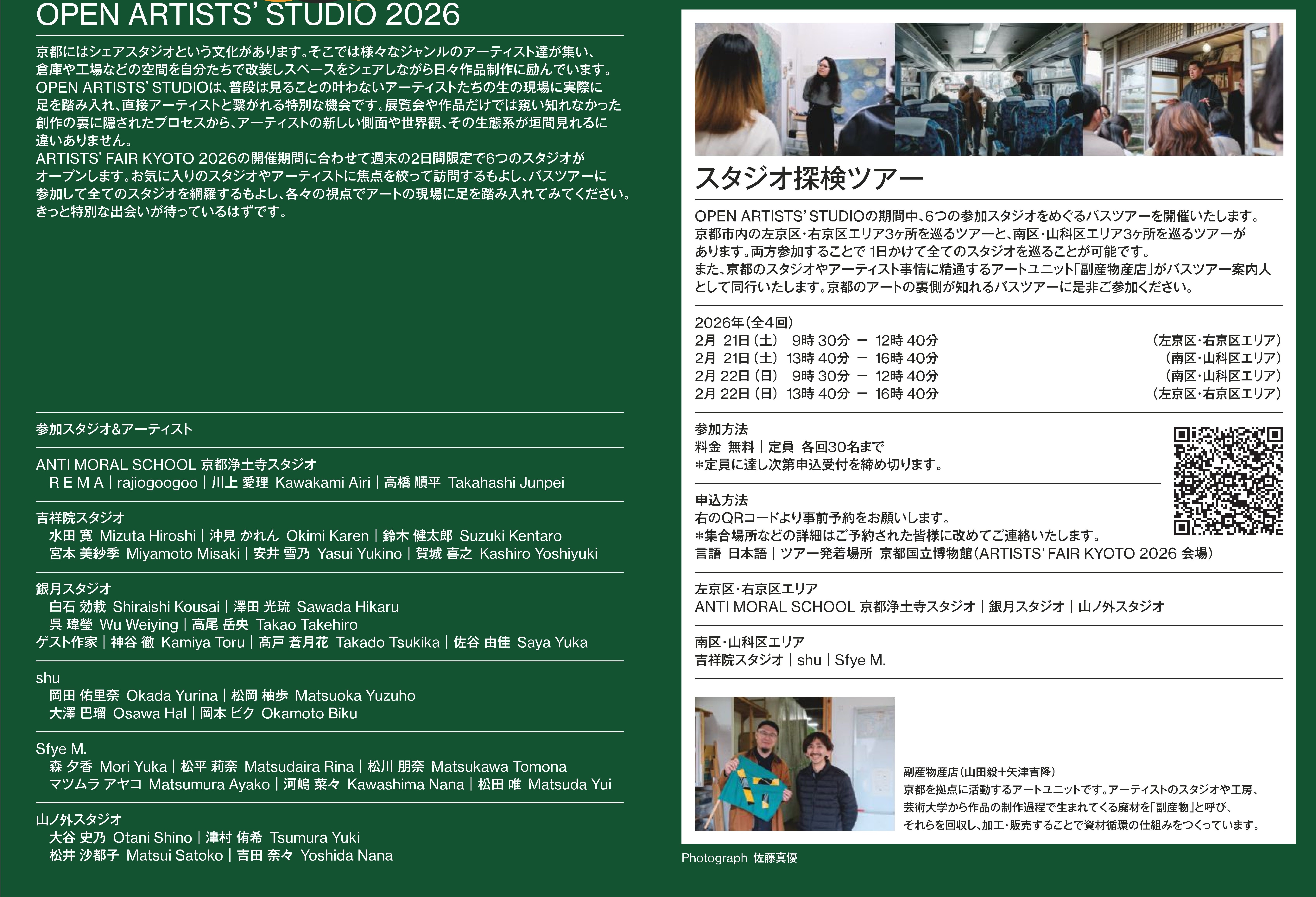 ■京都府では、若手アーティストのシェアスタジオを公開する「OPEN ARTISTS’ STUDIO 2026」を2月21、22日に開催します。