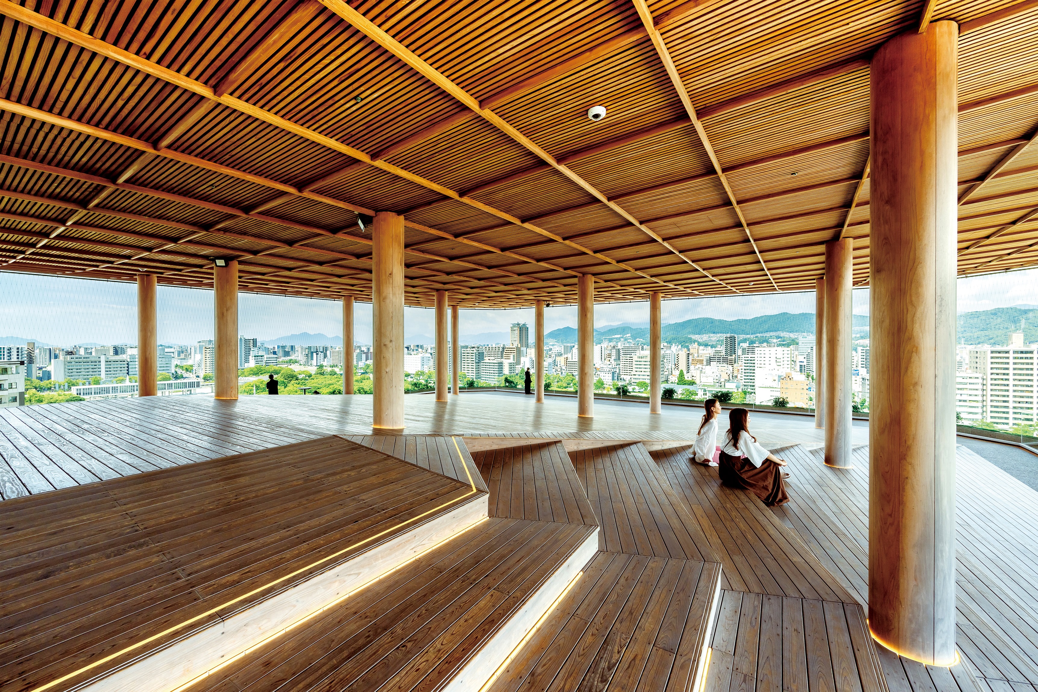 おりづるタワーは、世界遺産「原爆ドーム」の東隣に位置した施設で、広島の過去・現在・未来を望むことができます。ウッドデッキの屋上展望台からは、平和記念公園・原爆ドーム、晴れた日には宮島の弥山(みせん)まで見渡すことができます。また、おりづるタワー専用の折紙で折った折り鶴を、おりづるタワーのシンボルである「おりづるの壁」に投入することができます。世界中から集まる平和への想いや祈り、それらが積み重なって完成する「おりづるの壁」にぜひ参加してみましょう。地元で愛されているお土産を取り揃えた物産館「ひろしまIPPIN 本店」や、広島産の果物を中心に使用した自家製のドリンクやスイーツが楽しめるカフェも併設しているので、休憩にも最適です。