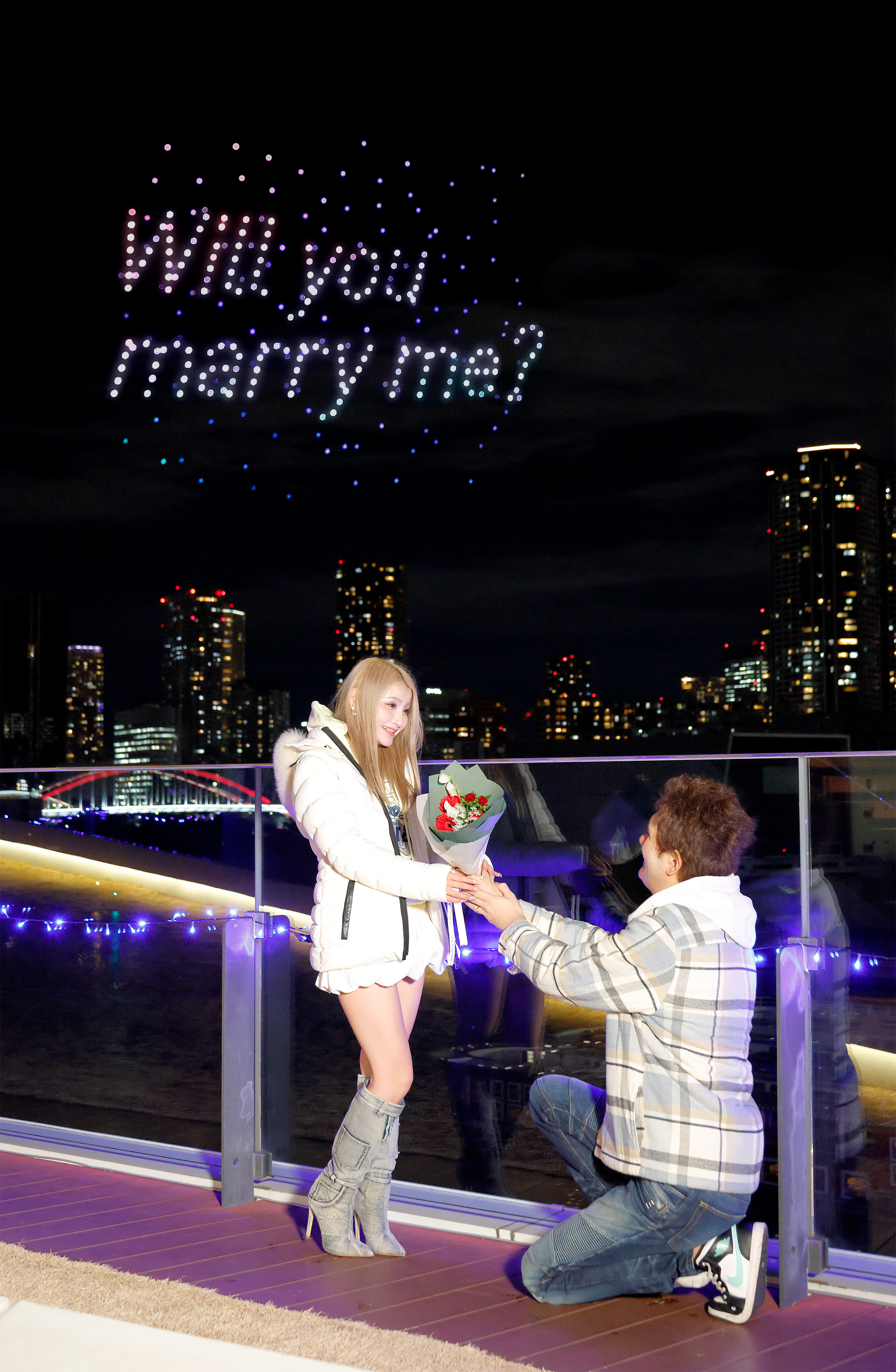 「今日は彼女へのクリスマスプレゼントの意味も込めて、サプライズでここに連れて来ました。つい先日入籍したばかりだけど、彼女にきちんとプロポーズの言葉を伝えられないまま結婚したので、いつかライトダンスでこの想いを伝えたいと思っています。」