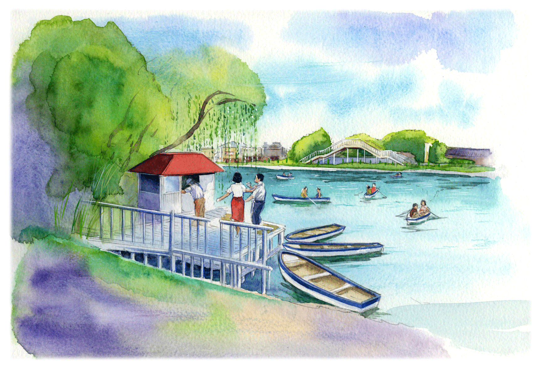 佐賀市民に愛された「お堀のボート」。作者も小学六年生(1976年)のころ乗ったことがあります。この場所は中央公園だったのですが、1977年の春に現在の駐車場になりました(そのときいまの駐車場へのゲート路もできました)。その際、ボート乗り場はかろうじて命脈を保ちましたが、利用客の減少を理由に1998年(平成10年)に閉鎖されました。’60〜’70年代はラインがはいった木製ボートでしたが、晩年は白い樹脂製になった模様です。