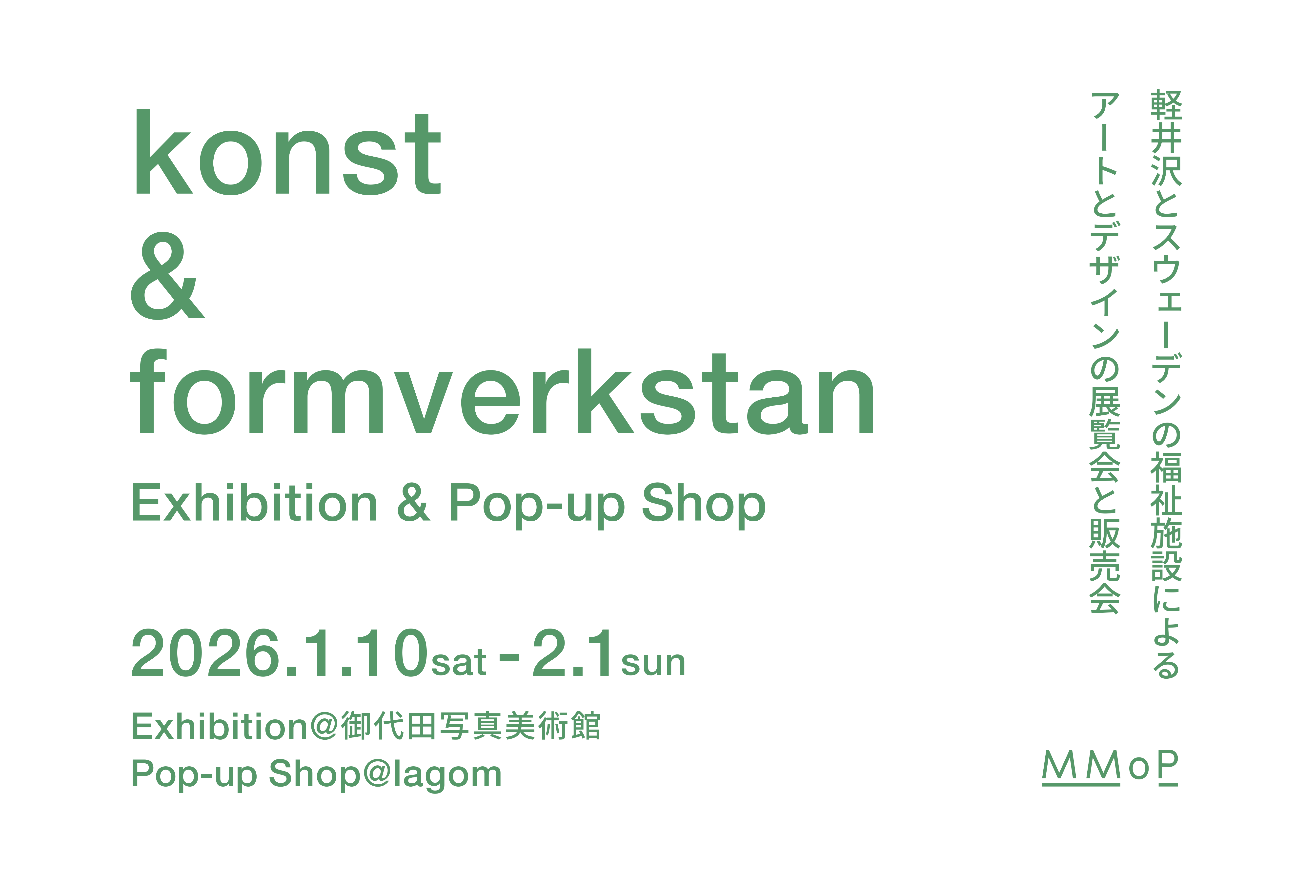 長野県·御代田町に位置する複合施設MMoP(モップ)は、軽井沢を拠点に障がいのあるアーティストの活動支援を行うアート・デザイン専門福祉プロジェクト「konst(コンスト)」と、2026年1月10日(金)から2月1日(日)の期間、御代田写真美術館にて、「konst & formverkstan展」を開催します。