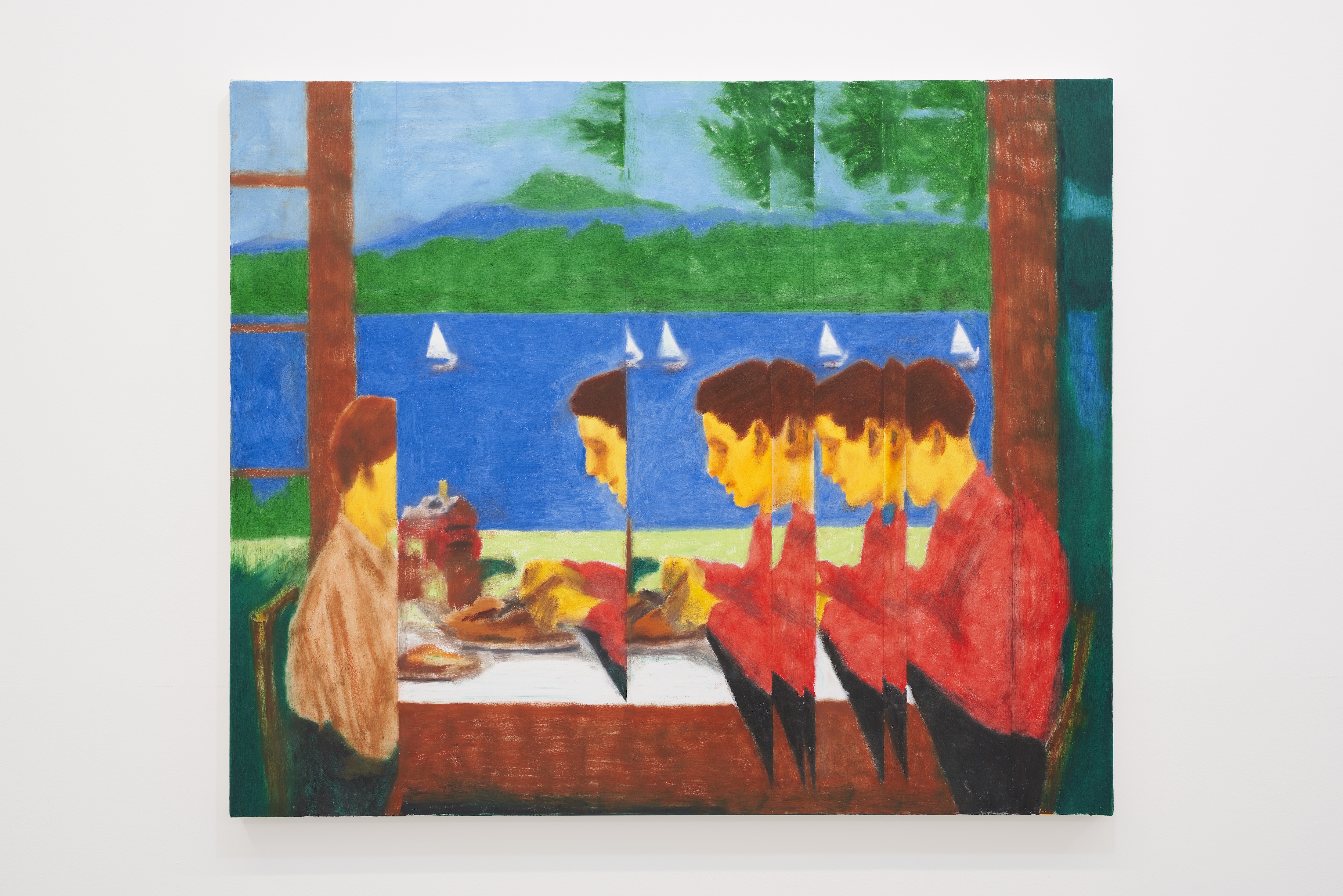 複数のイメージを一つの画面に併置する独自の手法によって、異なる場面や気配が同時に立ち現れるような絵画空間が生まれます。絵画は一瞬で完結するものではなく、視線の移動や滞留によって、徐々に像を結んでいくもの。加藤の作品は、そうした“観る時間”を内包した表現として成立しています。