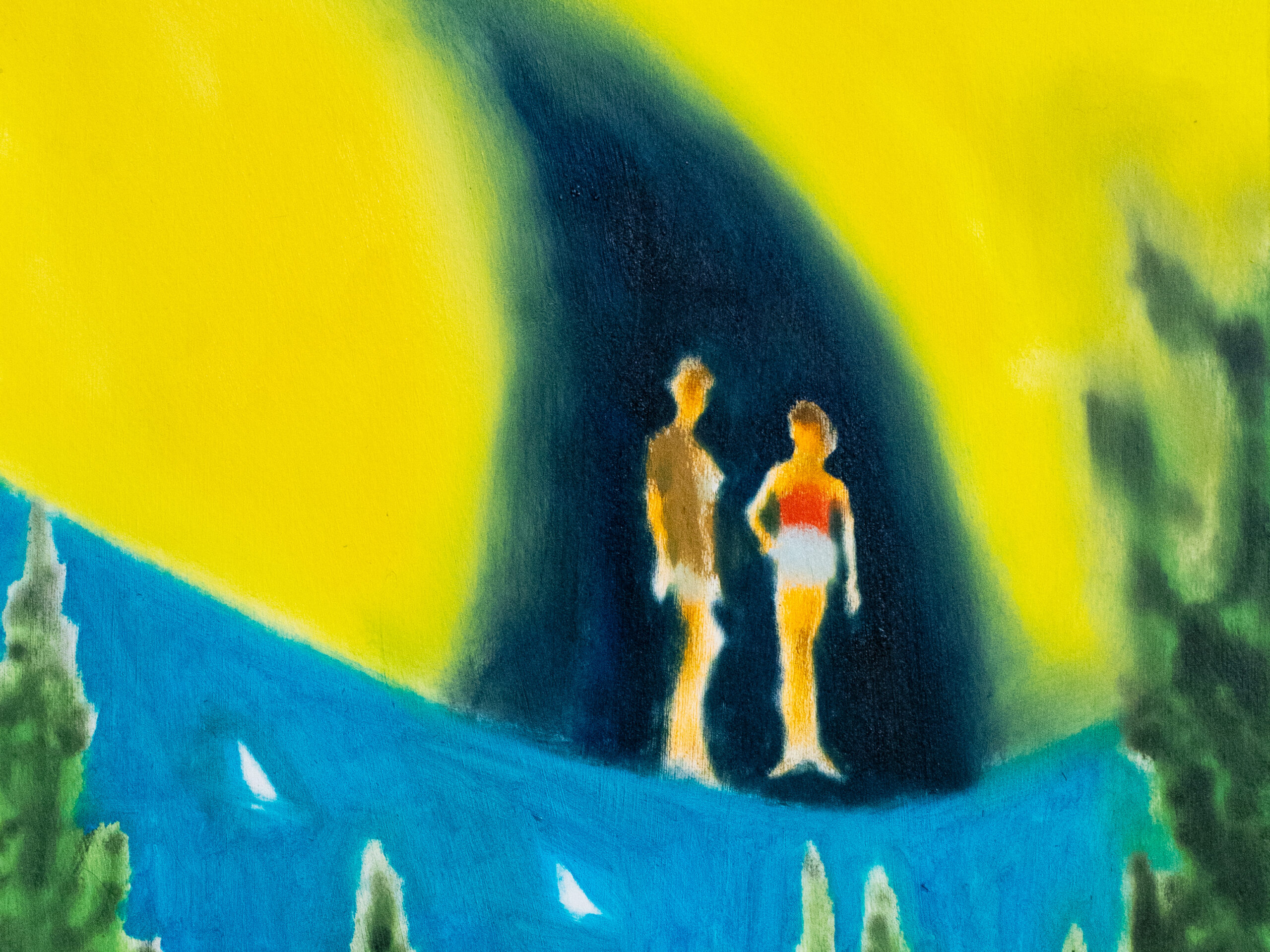 複数のイメージを一つの画面に併置する独自の手法によって、異なる場面や気配が同時に立ち現れるような絵画空間が生まれます。絵画は一瞬で完結するものではなく、視線の移動や滞留によって、徐々に像を結んでいくもの。加藤の作品は、そうした“観る時間”を内包した表現として成立しています。